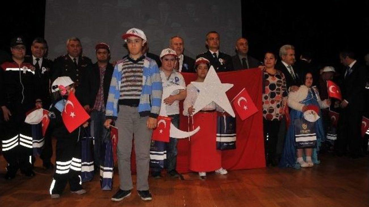 Şehitkamil Kültür ve Kongre Merkezi’nde düzenlenen kutlama etkinliklerinde Gaziantep Büyükşehir Belediyesi Sağlık Hizmetleri Daire Başkanlığı tarafından yürütülen Down-up projesi kapsamında down sendromlu çocuklar fahri polis oldu. Down sendromlu çocuklar son yılın popüler şarkısı Gangam Style dansıyla izleyenleri kendilerine hayran bırakırken, kısa bir de tiyatro gösterisi sergiledi. Bir kapkaç olayını canlandıran down sendromlu çocuklar, kapkaç olayını gerçekleştiren şahısları yakalayarak, çantayı sahibine teslim etti. Çocuklar ay yıldız ile Türk bayrağı yaparken, minik fahri polis Eda Bayrak’ın okuduğu İstiklal Marşı izleyicilere duygu dolu anlar yaşattı. Bazı polisler gözyaşlarını tutamadı. Duygu dolu dakikaların yaşandığı salonda konuklar çocukları dakikalarca ayakta alkışlayarak, ayrı ayrı kutladı. Program sonunda Gaziantep Emniyet Müdürü Ömer Aydın, fahri polis olan down sendromlu çocuklara hediyeler verdi.