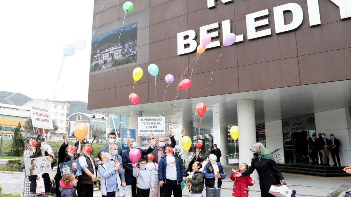 Körfez Belediye Başkanı Şener Söğüt, ’Dünya Down Sendromlular Farkındalık Günü’ dolayısıyla down sendromlu çocukları belediyede ağırlayarak, birlikte gökyüzüne balon bıraktı.