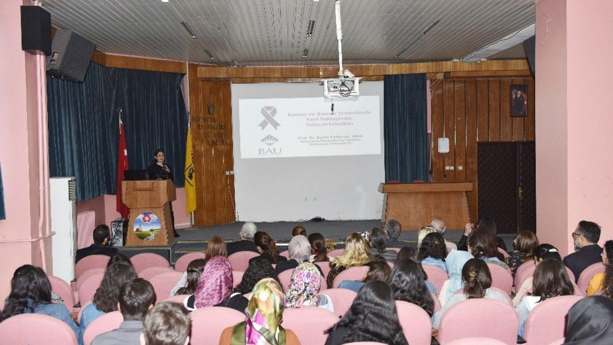 Bahçeşehir Üniversitesi Tıp Fakültesi Öğretim Üyesi Prof. Dr. Berrin Pehlivan’ın konuşmacı olarak katıldığı konferansta kanserden korunmanın yolları ile erken tanı için konular ele alındı. Prof. Dr. Berrin Pehlivan, çağın hastalığı kanser hakkında açıklamalarda bulundu. Kadınlarda daha çok meme kanseri görüldüğünü ifade eden Pehlivan, "Meme, akciğer kanserleri en çok görünen kanserler arasında. Erkeklerde de prostat ve akciğer kanseri görünüyor. Kanserin bu faktörlerin ortadan kaldırılmasıyla tedavi edilebilir bir hastalık. Şu andaki etkinlikte de amacımız üniversite öğrencilerini bilinçlendirmek” dedi.
