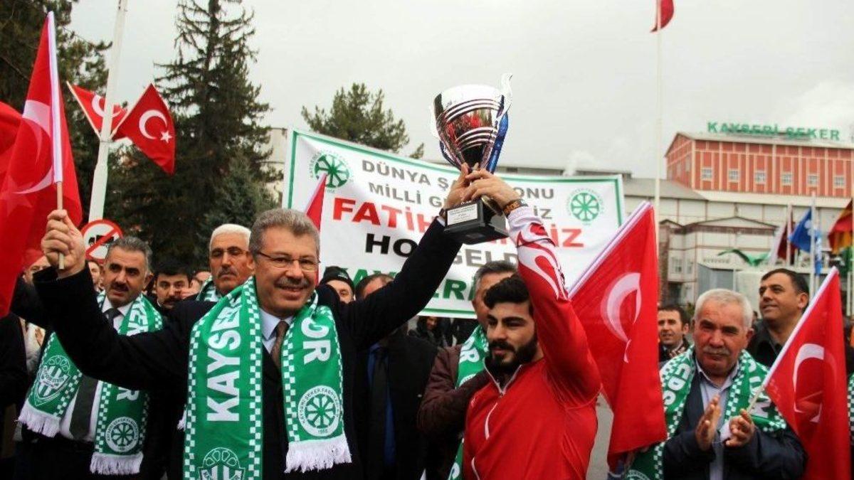 Polonya’da düzenlenen U23 Dünya Güreş Şampiyonası’nda 75 kiloda dünya şampiyonu olan Fatih Cengiz, memleketi Kayseri’de Pancar Ekicileri Kooperatifi ve Kayseri Şekerspor Onursal Başkanı Hüseyin Akay ve yönetim kurulu üyeleriyle birlikte coşkuyla karşıladı.Fabrika girişinde davul ve zurna eşliğinde Başkan Akay ve yönetim kurulu üyeleri ile birlikte fabrika çalışanları tarafından coşkuyla karşılanan Kayseri Şekerspor güreşçisi Dünya şampiyonu milli güreşçi Fatih Cengiz, omuzlara alınarak işletme meydanına getirildi. Burada açıklamalarda bulunan Kayseri Pancar Ekicileri Kooperatifi Yönetim Kurulu Başkanı ve Kayseri Şekerspor Onursal Başkanı Hüseyin Akay, Kayseri Şeker olarak güreşçilere ellerinden geldiğince katkı sağlamaya çalıştıklarını söyledi. Cengiz’in Türk Milleti’ne yaşattığı gururun hiçbir şeyle ölçülemeyeceğini ifade eden Akay, “Bugün mutluyuz, heyecanlıyız, gururluyuz. Elbette Kayseri Şeker’in işletme meydanında geçmişte çok güzel toplantılar yaptık. Ama bugün çok anlamlı bir toplantı için bir araya gelmiş bulunuyoruz. Bir dünya şampiyonunu ağırlıyoruz, onun coşkusu içerisindeyiz. Bildiğiniz gibi güreş bizim ata sporumuz. Bu anlayış içerisinde Kayseri Şeker olarak güreşe elimizden geldiği kadar katkı sağlamaya çalışıyoruz, gençlerimizin bu manada ellerinden tutuyoruz, onlara imkanlar sağlamaya çalışıyoruz. Onların yetişmesi, başarılı olması için elimizden gelen gayreti gösteriyoruz. Gururla söylüyorum ki gençlerimiz kendilerine verdiğimiz bu imkanları, emeği zayi etmiyorlar. Gece, gündüz çalışarak büyük mutlulukları bize yaşatıyorlar. Türkiye’nin ihtiyaç duyduğu büyük mutluluğa katkı sağlamış oluyoruz. Önemli başarıları elde etmeye çalışan bu güreşçilerimizden bir tanesi Fatih Cengiz kardeşimiz Polonya’da yapılan U23 Dünya Şampiyonası’nda 75 kiloda bütün rakiplerini yenerek bizim gururumuz oldu. Al bayrağımızı göklerde dalgalandırarak İstiklal Marşımızı bütün dünyaya dinletti. Bunun karşılığı hiçbir şeyle ölçülemez; mutluluğu, gururu hiçbir şeyle karşılaştırılamaz. Bu sevinci, gururu büyük Türk Milletine yaşattığı için kendisiyle ne kadar iftihar etsek azdır. Biz karınca, kararınca katkı sağlamaya çalışıyoruz. Ama onlar kendilerine verdiklerimizin daha fazlasını bu büyük Türk Milletine gururla yaşatıyorlar. Allah güçlerine güç katsın. İnşallah bu başarıları devam etsin” ifadelerini kullandı. Akay ayrıca son 3 yılda toplam 13 madalyayı Kayseri Şekerspor’un güreşçilerinin ülkemize kazandırdığını da sözlerine ekledi.Fatih Cengiz: “Hedefim 2020 olimpiyat şampiyonluğu”Dünya şampiyonu Milli Güreşçi Fatih Cengiz ise, finale çıkmadan önce Türk Bayrağını alarak koşmayı ve bayrak üzerinde secdeye durmayı hayal ettiğini kaydederek, “Küçüklüğümden beri ‘Bir gün acaba olacak mı’ diye hayalini kuruyordum, çok bekledim. Birçok zorluktan geçtik. Nasip oldu, bana hala rüya gibi geliyor. Gerçekten çok fazla çaba, fedakarlık gösterdim bunun için. Finale çıkmadan önce iki sahne geliyordu aklıma; birisi Türk Bayrağını alıp koşmak, diğeri de bayrağın üzerinde secdeye durmak. Çok şükür bu bana nasip oldu. İnşallah Kayseri Şekerspor bünyesinde başkanım ve sporcularla birlikte 2020 olimpiyatlarında ülkeme ve kulübüme altın madalya getireceğim” diye konuştu.Konuşmaların ardından Başkan Akay, şampiyon güreşçiye 20 bin TL ile çeşitli hediyeler takdim etti.