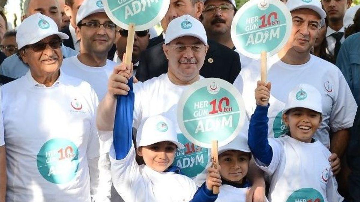 Sağlık Bakanı Recep Akdağ, Türkiye’nin en önemli sağlık sorununun hareketsizlik ve şişmanlık olduğunu vurgulayarak, "Benim de fazla kilolarım var, ben de bugünden itibaren ciddi bir programa başlıyorum. Şu anda 86 kiloyum, planımda da birkaç ay içerisinde en az 10 kilo vermek var"Sağlık Bakanlığı tarafından Dünya Yürüyüş Günü dolayısıyla düzenlenen sloganı “Her Gün 10 Bin Adım” olan yürüyüş etkinlik gerçekleşti.3-4 Ekim Dünya Yürüyüş Günü etkinlikleri kapsamında Etlik Yürüyüş Yolu’nda düzenlenen yürüyüşe Sağlık Bakanı Recep Akdağ, Milli Eğitim Bakanı İsmet Yılmaz, Bahreyn Yüksek Sağlık Konseyi Başkanı Korgeneral Dr. Shaikh Mohammed Bin Abdullah Al Khalifa, Azerbaycan Sağlık Bakan Yardımcısı Elsever M. Agayev, Pakistan Ankara Büyükelçisi? Sohail Mahmood, Keçiören Belediye Başkanı Mustafa Ak ve çok sayıda vatandaş katıldı.Yürüyüşe başlamadan önce bi açıklama yapan Bakan Akdağ, "Her gün 10 bin adım yürümeliyiz ya da 10 bin adıma muadil bir hareket yapmalıyız. İmkanı olanlar, evlerinde ya da spor merkezlerinde egzersiz yapabilirler, yüzme imkanı olanlar yüzebilirler, bisiklete imkanı olanlar bisiklet sürebilirler ama gerçekten en pratik olanı, toplumun büyük bir çoğunluğu için yürümek. Sağlığımız açısından bunu gerçekten çok önemsiyoruz. Bugün bize göre Türkiye’nin en önemli sağlık sorunu hareketsizlik ve şişmanlık. Benim de fazla kilolarım var, ben de bugünden itibaren ciddi bir programa başlıyorum. Şu anda 86 kiloyum, planımda da birkaç ay içerisinde en az 10 kilo vermek var. Toplumun bütün vatandaşlarımızın da ihtiyacı olan bütün kardeşlerimin de bunu başaracağına inanıyorum. Şeker hastalığından tutun, kalp hastalıklarına birçok kansere varıncaya kadar hareketsizlik ve şişmanlık önemli bir sebep" diye konuştu."21. yüzyılı ancak sağlıklı nesillerle inşa edebiliriz"Milli Eğitim Bakanı İsmet Yılmaz ise, "Hayat boyu sağlıklı yaşamak için hareketli olmak lazım. Çağımızın hastalığı nedir? derseniz, muhakkak ki fazla kilodur. Fazla kilo, fazla hastalıklara yol açıyor. 21. yüzyılı ancak sağlıklı nesillerle inşaa edebiliriz. Mesela tüm okullarda önümüzdeki dönemde spor alanında, beden eğitimi alanında çok daha etkin bir şekilde sağlıklı hayata katkıda bulunmaya çalışacağız" ifadesini kullandı.İki Bakan da 4 ay içerisinde 10’ar kilo vereceğini taahhüt etti. 4 ay sonra yine burada olacaklarını kaydeden Bakan Yılmaz, 80’li kilolarda olduğunu belirtti.Bakanlar çocuklarla birlikte el ele yürüdü. Bakan Akdağ, Milli Eğitim Bakanı’nın etkinliğe katılımının çok önemli olduğunu vurgulayarak, "Gelecek nesiller hareket eden, şişmanlamayan, sağlığını daha iyi koruyan nesiller olarak göreceksek bu okullarımızda olacak, çocuklarımızla olacak. Bizim için de zaman geçmiş değil, biz de gayret ediyoruz Bakanımızla birlikte onun için söz verdik ama gelecek yavrularımızla olacak onun için onlarla beraberiz" dedi.Bakan Akdağ, 10’ar kilo vermeye söz verdiklerini ve bu yürüyüşlerin devam edeceğini bildirerek, katılımı mükemmel bulduğunu söyledi."Bakanımla ikimiz 4 ay içerisinde 10’ar kilo verme kararı aldık"Bitiş çizgisine gelen çocuklar, hep bir ağızdan ’Her gün 10 bin adım’ dedi.Bakan Akdağ da, "Milli Eğitim Bakanımızla beraber bugün kendimize kilo verme konusunda birer hedef koyduk. Eğer topluma bunun bir ihtiyaç olduğunu söylüyorsak, kendi ihtiyacımızı da en başta ortaya koymak ve bunun için de toplumu bilgilendirmek doğru olur diye düşünüyoruz. Dolayısıyla değerli Bakanımla ikimiz 4 ay içerisinde 10’ar kilo verme kararı aldık. Çok kolay değil, bizim çalışma tempomuzda gerçekten bu çok zor. Eğer bunu biz başarırsak toplum da herkes başarabilir. Çünkü çok uzun süreler, günde 12-14 saat, haftada 7 gün genellikle oturarak, toplantılarla çalışıyoruz. Bu şekildeki çalışma temposu kilo almak için çok müsait, çok gayret edeceğiz. Az yiyeceğiz, çok hareket edeceğiz ama Allah’ın izniyle bunu başaracağız. Toplumda kilo fazlası olan, ihtiyacı olan bütün kardeşlerimizin de bunu başaracağına inanıyoruz. Bugünden itibaren herkes kendisine böyle bir hedef koyabilir" açıklamasını yaptı."Türkiye’nin yarını bugünden daha iyi olacak, daha sağlıklı günler bizi bekliyor""Günde 10 bin adım sağlıklı yaşam için mutlaka bir farkındalık oluşturmak gerekirdi" diyen Bakan Yılmaz şunları kaydetti:"Sağlık Bakanımızın öncülüğünde bugün bu farkındalığı oluşturuyoruz. Sağlıklı yaşam, mutlu yaşam. Sağlıklı yaşam, huzurlu yaşam. Gereğinden fazla yük taşımamak içn mutlaka kilolardan kurtulmak lazım. Fazla kilolar insanı yorar, yıpratır, yapmak istediklerini de yapamaz hale getirir. Dolayısıyla günde 10 bin adım ideal, bu idealin üzerine çıkan da olabilir, altında kalan da olabilir ama altında kalanın bir sonraki gün bunu telafi etmesi lazım. İlk üç katta evi olanların mümkünse zorunlu kalmadıkça asansörü kullanmaması lazım. Evine veya okuluna 10 bin adımdan daha yakın olanların servisi kullanmaması lazım, yürüyerek gidip gelmesi lazım. Türkiye’nin yarını bugünden daha iyi olacak, daha sağlıklı günler bizi bekliyor."