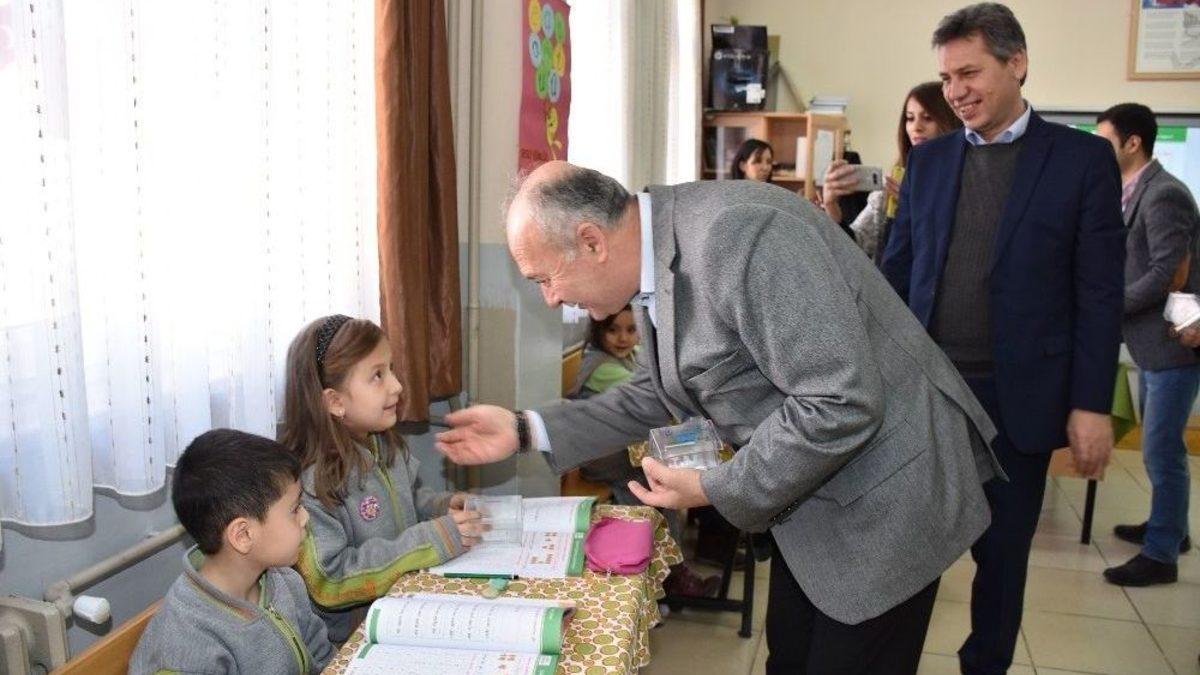 Dursunbey Belediyesi ve İlçe Milli Eğitim Müdürlüğü tarafından hayata geçirilen ‘Küçük Küçük Dünya’yı Biriktiriyoruz’ Projesi Milletvekilleri Kasım Bostan ve Mahmut Poyrazlı’nın katılımı ile start aldı.Dursunbey Belediyesi ve İlçe Milli Eğitim Müdürlüğü tarafından hayata geçirilen ‘Küçük Küçük Dünya’yı Biriktiriyoruz’ Projesi Sadullah Özer İlkokulunda yapılan törenle başladı. Çcouklara tasarruf alışkanlığı ve yardımlaşma bilinci kazandırmak amacı ile başlatılan proje kapsamında ilçe merkezinde bulunan 1 ve 4. Sınıf öğrencilerine özel kilitli şeffaf kumbaralar dağıtılacak.Projenin ilk etabı Sadullah Özer İlkokulu 1/A sınıfında başladı. Balıkesir Milletvekilleri Kasım Bostan, Mahmut Poyrazlı, Dursunbey Belediye Başkanı Ramazan Bahçavan, İlçe Milli Eğitim Müdürü Ümit Gökdemir ve öğretmenleri katılımı ile gerçekleşe dağıtım törenin de 20 öğrenciye kumbaraları teslim edildi. Dağıtım töreni öncesinde konuşma yapan Dursunbey Belediye Başkanı Ramazan Bahçvan tasarruf alışkanlığını küçük yaşlarda öğretecek bu projede emeği geçen herkese teşekkür etti. Başkan Bahçavan tasarruf yapılacak bu paralarla ilerleyen zamanlarda bazı ihtiyaçların karşılanabileceğini söyledi. Balıkesir Milletvekili Kasım Bostan ise dağıtımı yapılan bu kumbaralara öğrencilerin babalarından aldıkları harçlıkların bir kısmını bu kumbaraya atmalarını istedi. Tasarrufun hem ülkeler açısından öenmli olduğuna vurgu yapan Bostan, bu bilincin gelişmesi için bu projenin hayata geçirildiğine vurgu yaptı.Konuşmaların ardından Dursunbey Belediyesi tarafından finanse edilen kumbaralar vekiller ve Belediye Başkanı Ramazan Bahçavan tarafından öğrencilere tek tek dağıtıldı. Proje kapsamında ilçe genelinde bulunan yaklaşık 2 bin öğrenciye bu kumbaralardan dağıtılacak. Bu programın ardından okula yeni yapılan Z Kütüphaneyi ziyaret eden vekiller burada Bengi projesi kapsamında gerçekleşen okuma etkinliğine de katıldılar.