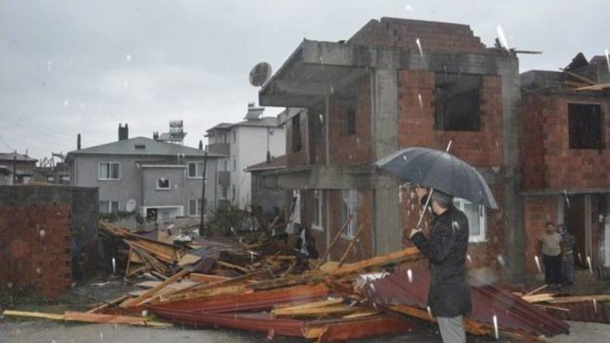 Düzce’nin Akçakoca ilçesinde gece yarısından sonra etkisini gösteren fırtına ve hortum nedeniyle 30’un üzerinde evin çatısı uçtu, onlarca evi su bastı.Akçakoca Belediye Başkanı Cüneyt Yemenici ve Afet İşleri yetkilileri hasar tespit çalışmalarına başladı. Belediye Başkanı Cüneyt Yemenici, yapılan tespitlerde bir çok mahallerde hortum afeti nedeniyle 30’un üzerinde çatının uçması ve su baskınlarının olduğunu söyledi. Başkan Yemenici, Afet İşleri tarafından hasar tespit çalışmaları konusunda vatandaşların bizzat Belediye ve Kaymakamlığa müracaat etmelerini belirterek, ’’Hortum şiddetli bir şekilde bir bölgede etkili oldu. Zarar büyük, su baskınları konusunda tedbirleri alıyoruz. Ancak vatandaşlar da bu konuda duyarlı olmalılar. Hortum olayında bir ağır yaralımız var, o da hastanede tedavi altında" diye konuştu.Başkan Yemenici, şehrin bir kısmına halen elektrik verilemediğini ancak çalışmaların sürdüğünü de belirtti.