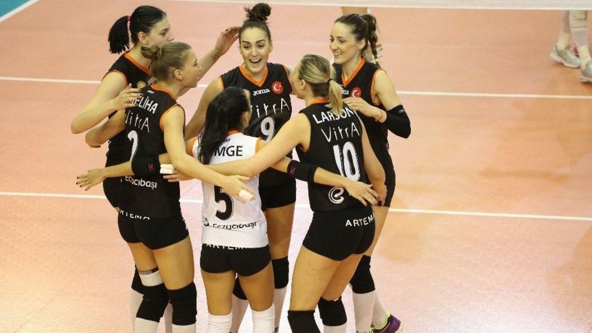 Vestel Venus Sultanlar Ligi’nin 21. haftasında evinde Bursa Büyükşehir Belediyespor’u konuk eden Eczacıbaşı VitrA, karşılaşmadan 3-0 galip ayrıldı.Karşılaşmaya Boskovic ve Meliha’nın etkili ataklarıyla başlayan Eczacıbaşı VitrA, birinci seti 25-19 kazanırken, ikinci sette de Büşra’nın ve Beyza’nın yaptığı bloklarla rakibine şans tanımadı. Karşılıklı sayılarla başlayan üçüncü sette ise oyunun dengesini koruyan turuncu beyazlılar, seti 25-19 ve maçı 3-0 kazandı.Mücadelenin en skorer ismi 19 sayıyla Tijana Boskovic olurken, Meliha İsmailoğlu aldığı 10 sayıyla takımının galibiyetinde rol oynadı.Bu galibiyetle ligin bitimine bir hafta kala liderliğini garantileyen Eczacıbaşı VitrA, puanını 60.710’a yükseltti ve önümüzdeki sezon Şampiyonlar Ligi’ne katılma hakkı kazandı.Salon: EczacıbaşıHakemler: Ramazan Demiröz, Ramazan Çevik.Eczacıbaşı VitrA: Ognjenovic, Larson, Büşra, Boskovic, Meliha, Beyza, Simge (L), Güldeniz.Bursa BŞB: Ergül, Dimitrova, Leys, Belien, Nilay, Fatma, Aylin (L), Cansu, Bytsenko.Setler: 3-0 (25-19,25-18,25-19)Süre: 74 dakika (23,25,26)