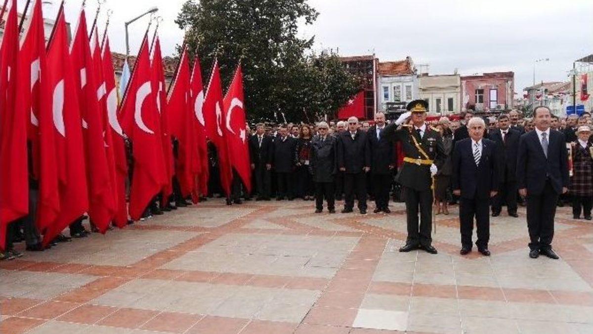 Edirne’de, Cumhuriyet Bayramı etkinlikleri kapsamında, Atatürk Anıtında çelenk sunuldu. Törende küçük yaşta bir çocuğunun ayağında terlikleriyle kutlamalara katılarak, Cumhuriyet sevincini Atatürk ve Türk Bayrağını sırtına alarak yaşaması dikkat çekti.Edirne’de Cumhuriyet’in kuruluşunun 91. yıl dönümü kapsamında tören düzenlendi. Törene Edirne Valisi Dursun Ali Şahin, Edirne Garnizon Komutan Komutanı Hidayet Arı, Edirne Belediye Başkanı Recep Gürkan, kamu kurumlarının müdürleri, siyasi parti temsilcileri ve vatandaşlar katıldı. Belediye Başkanı Recep Gürkan, törende bayanlara eşarp dağıtırken, basın mensuplarına ve görevlilere Atatürk ve Türk bayrağı hediye etti.Törende, saygı duruşunda bulunulması ve İstiklal Marşının okumasının ardından Atatürk Anıtına çelenk sunuldu. Öte yandan, törende küçük yaşta bir çocuğunun ayağında terlikleriyle kutlamalara katılarak, Cumhuriyet sevincini Atatürk ve Türk Bayrağını sırtına alarak yaşaması dikkat çekti.
