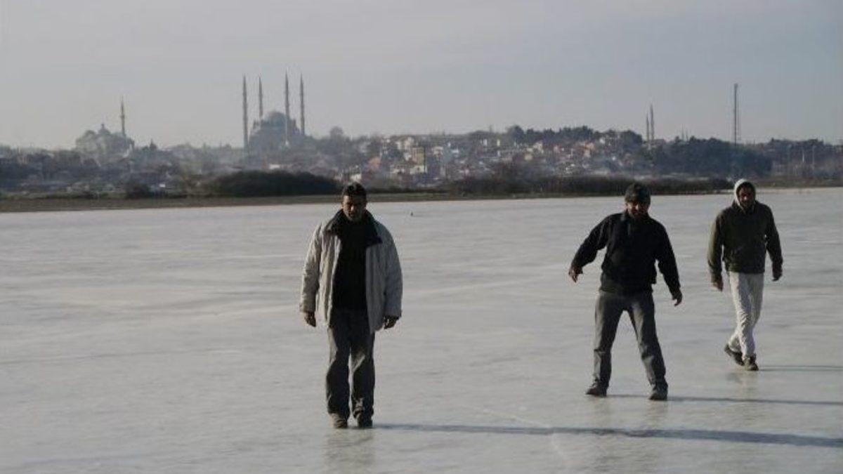 Edirne’de hava sıcaklığının eksi 13 dereceye kadar düşmesi nedeniyle süs havuzları dondu, taşkının ardından su altında kalan tarlalar buz tuttu.Edirne’de etkili olan soğuk hava, hayatı olumsuz etkiliyor. Sabah işe gitmek üzere yola çıkan vatandaşlar, soğuk hava ile karşılaşınca donan araçlarını çalıştıramadı. Taşkın nedeniyle su altında olan tarlalar ve Sarayiçi Er Meydanı’nda bulunan sular da buz tuttu. Şehir merkezinde soğuklar nedeniyle süs havuzları dondu. Soğuk havanın etkisiyle güvercinleri düşünenler kuşları yem atarak besledi. Tarlaların buz tutmasını değerlendiren vatandaşlar ise buz üzerinde kaydı.Edirne’de soğuktan yem bulamakta zorlanan kuşlara yem atan Gökhan İlgiç, onları bu soğuk havada unutmamak gerektiğini belirterek, kapıların önüne her zaman bir kap su koyulması gerektiğini söyledi.Edirne’de soğuk havanın etkisinin süreceği tahmin ediliyor.