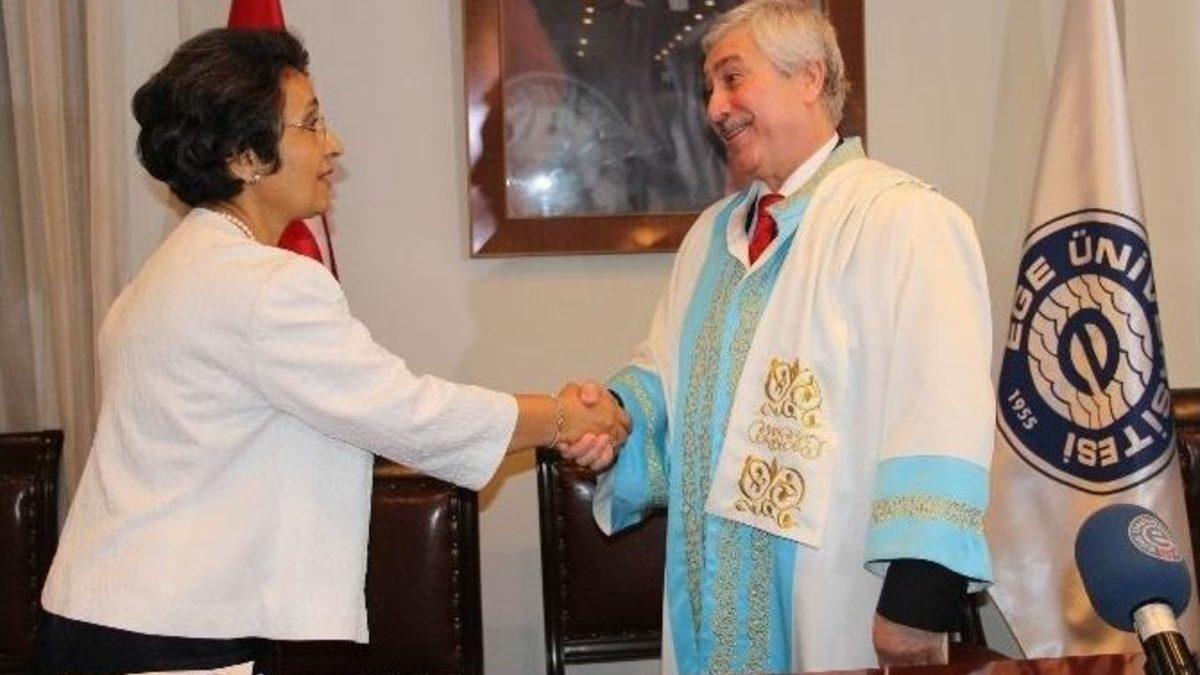 Cumhurbaşkanı Erdoğan tarafından Ege Üniversitesi Rektörlüğüne atanan Prof. Dr. Cüneyt Hoşcoşkun, düzenlenen törenle görevi eski Rektör Prof. Dr. Candeğer Yılmaz’dan devraldı.Ege Üniversitesi’nin 13. Rektörü olarak Cumhurbaşkanı Recep Tayyip Erdoğan tarafından atanan Prof. Dr. Cüneyt Hoşcoşkun, Ege Üniversitesi Rektörlüğü Senato Salonunda düzenlenen törenle görevi devraldı. Senato üyelerinin katıldığı törende konuşan Ege Üniversitesi’nin eski rektörü Prof. Dr. Candeğer Yılmaz, 8 yıllık görev süresi boyunca hayata geçirdiği projeleri anlattı. Görev süresinde Ege Üniversitesi’nin 55. ve 60. yıl dönümlerini kutladığını ifade eden Prof. Dr. Yılmaz, “Ege Üniversitesi’nin birlikte öğrenen, gelişen, büyüyen bir üniversite olduğunu herkese gösterdik” dedi.“15 Temmuz gecesi meydandaydım”Ege Üniversitesi’nin ilk kadın rektörü Prof. Dr. Candeğer Yılmaz’dan görevi devralan Prof. Dr. Cüneyt Hoşcoşkun ise 15 Temmuz gecesi yaşanan darbe girişiminde şehit olan vatandaşlara Allah’tan rahmet dileyerek sözlerine başladı. Rektör Prof. Dr. Hoşcoşkun, “Ülkemize bu acıyı yaşatanları lanetliyorum. Cenabı Allah bize bir daha bu sıkıntılı geceyi yaşatmasın. O gece hiç uyumadım, sabaha kadar meydandaydım” diye konuştu.Ege Üniversitesi Rektörü olmasında ailesinin ve arkadaşlarının kendisinde emekleri olduğunu ifade eden Hoşcoşkun, “Yıllardan beri birlikte olduğumuz Sayın Cumhurbaşkanımıza, Meclis Başkanımıza ve Başbakanımıza teşekkür ediyorum” dedi. Prof. Dr. Hoşcoşkun, yeni dönem için projelerini ise ileri bir tarihte anlatacağını söyledi.Konuşmaların ardından eski ve yeni rektörler birbirlerine çiçek sunarken Prof. Dr. Candeğer Yılmaz, yeni Rektör Prof. Dr. Cüneyt Hoşcoşkun’a Rektörlük Cübbesini giydirdi. Törenin ardından Ege Üniversitesi Rektörlük Binası önünde, senato üyeleriyle birlikte hatıra fotoğrafı çektirildi.