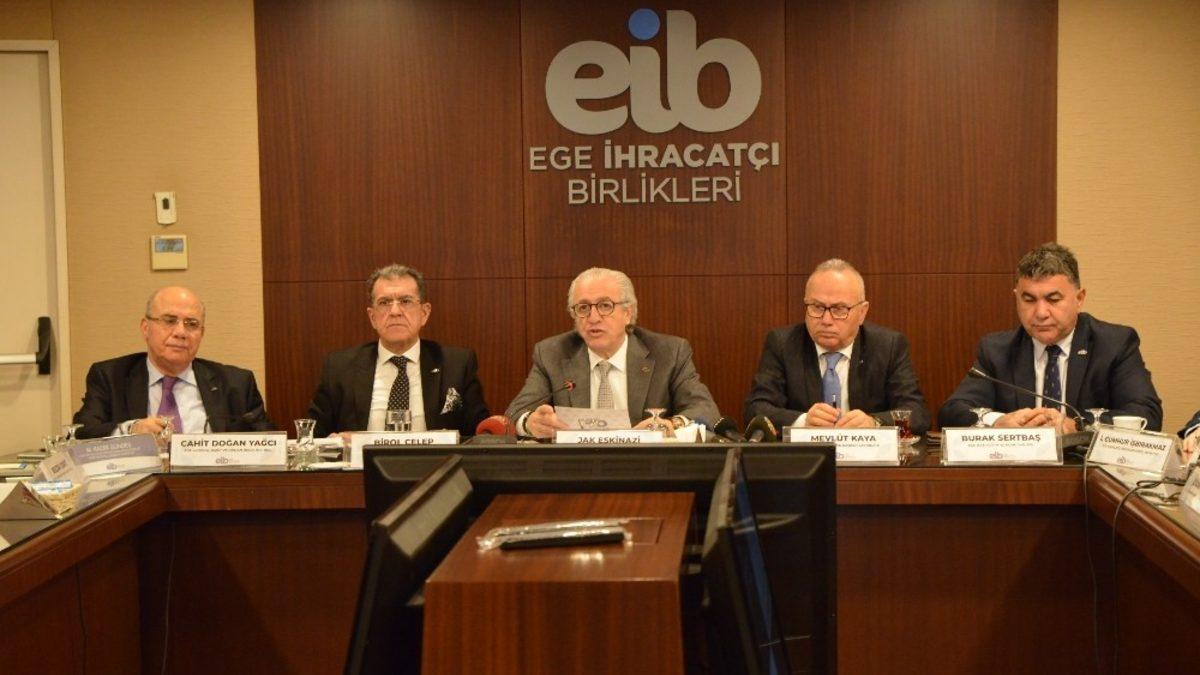 Ege İhracatçı Birlikleri’ndeki basın toplantısına; EİB Koordinatör Başkanı Jak Eskinazi, EİB Koordinatör Başkan Yardımcıları Mevlüt Kaya ve Birol Celep, Ege Hazırgiyim ve Konfeksiyon İhracatçıları Birliği Başkanı Burak Sertbaş, Ege Mobilya Kağıt ve Orman Ürünleri İhracatçıları Birliği Başkanı Cahit Doğan Yağcı, Ege Su Ürünleri ve Hayvansal Mamuller İhracatçıları Birliği Başkanı Bedri Girit, Ege Zeytin ve Zeytinyağı İhracatçıları Birliği Başkan Yardımcısı M. Kadri Gündeş, Ege İhracatçı Birlikleri Genel Sekreteri İ. Cumhur İşbırakmaz katıldı.