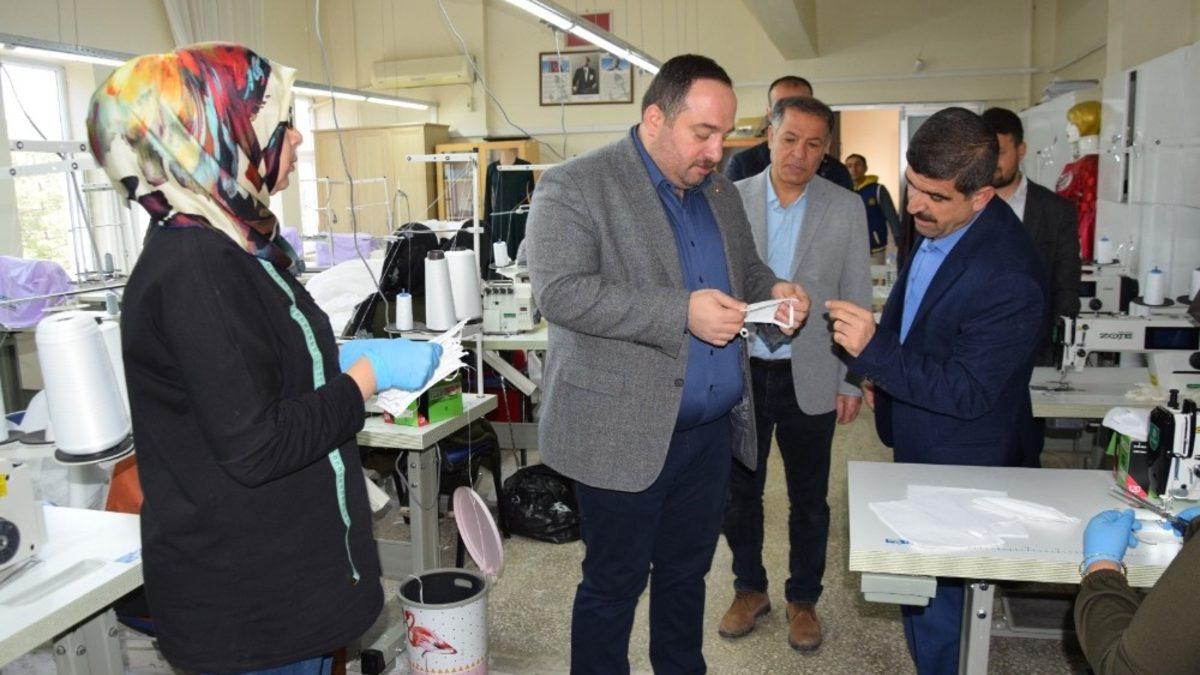 Viranşehir Belediye Başkanı Salih Ekinci, tulum ve maske üreten atölyeyi ziyaret etti.