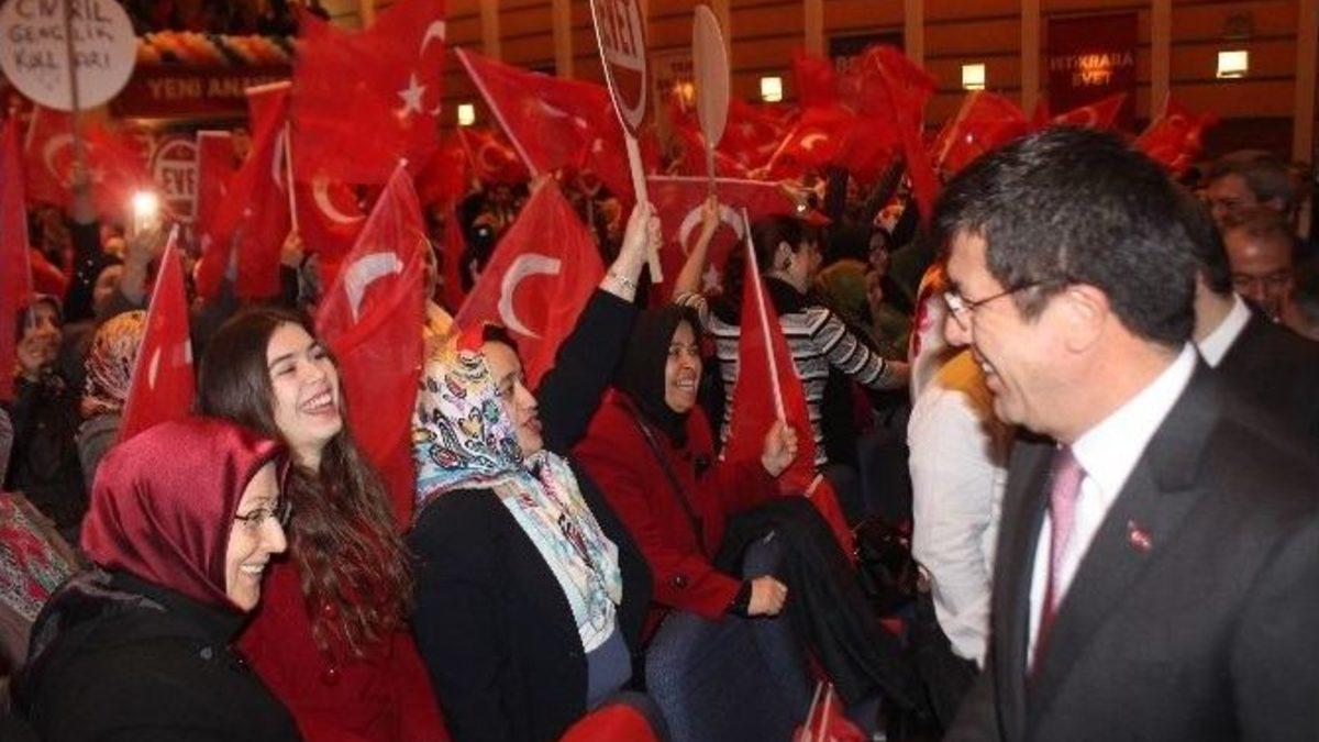 AK Parti Denizli İl Danışma Meclis Toplantısına katılan Ekonomi Bakanı Nihat Zeybekci, “Anayasa referandumunda Cumhurbaşkanı veya parti seçmiyoruz, milletin faydasına olacak sistem değişikliği yapıyoruz” dedi.Denizli EGS Kültür ve Kongre Merkezinde yapılan toplantıda konuşan Ekonomi Bakanı Nihat Zeybekci, 16 yıldan beri verdiği sözleri tutan ve hizmetleri yerine getiren bir partinin olduğunu kaydetti. Zeybekci, “Bunların derdi başka, bunların karın ağrısı başka, bunların derdi söyledikleri gibi, cumhuriyet veyahut laiklik veya başka şeyler değil. Bunlar biliyorlar, bu ülkede cumhuriyet tehdit altında hiç olmadı. Olmayacak da, bu ülkede AK Parti var oldukça, insan haklarına, özgürlüklere kimse yan gözle bakamayacaktır. Şimdi bunların en büyük dertleri ve kaygıları, diyorlar ki, bunlar öyle bir düzenleme yapacaklar ki, bu ülkede bir daha karışıklık, tereddütler olamayacak, endişeleri var” diye konuştu.Türkiye’nin tüm dünyada parmakla gösterilen bir ülke haline geldiğini belirten Zeybekci, Türkiye’nin Eximbank aracılığıyla Tanzanya’ya 1.5 milyar dolar verecek duruma geldiğini, Türkiye’nin dünyanın her yerinde var olduğunu ifade etti. Zeybekci, “Onun için karın ağrıları var, onlar alışmışlar, diyecekler ki, bu coğrafyada, Kafkaslarda, Ortadoğu’da, Balkanlar’da, Körfez’de, kendi istedikleri haritalar çizecek ve onlar istiyorlar ki, Türkiye kendi içiyle uğraşsın, terörle uğraşsın, FETÖ ile PKK ile uğraşsın. Buralara bakmasın istiyorlar, öyle yağma yok. Onun için CHP milletvekili El Bab’taki aziz şehitlerimizi anlayamaz. Zaten onlar diyor ki, dağdaki çobanla benim oyum bir mi olacak. Yılmaz Özdil denen adam, bu aziz millete, göbeğini kaşıyan adam, demedi mi? Aynı kökten geliyorsunuz. Sen anlarsın şehadetten şehitten. El Bab’taki sordular mı, peki Trablus’ta Mustafa Kemal ne yapıyordu, Mekke’de, Medine’de Fahrettin Paşa ne yapıyordu. Yazıklar olsun sizlere, bunları anlamanız mümkün değil, zaten anlayamazsınız” ifadelerini kullandı.Bu referandumun her şeyiyle tam bağımsızlık Türkiye için olduğunu belirten Zeybekci, birilerine faiz vermeyen, birilerine hesap vermeyen, birileri tarafından yönetilmeyen, için olduğunu söyledi.Milletin verdiği kararın her zaman başlarının üstünde yeri olduğunu aktaran Zeybekci, “7 Haziran seçim millet tek başına iktidar yapmadı. Milletin takdiri başımızın üstünde yeri var. Ne ama en ancak, milletin takdiri başımızın üstünde yeri var. Ama millet bir anda, kaybeden bu millet olduğunu kendileri gördü. Ekonomisi kaybetmeye başladı, memuru, işçisi, zanaatı hep beraber bir anda boşluğa düştü. Koalisyon olacak mı olmayacak mı, biri çıkıyor diyor ki, ne olursa olsun hayır diyeceğim. Türkiye bir macera geçirdi 1 Kasım seçimlerine gitti” dedi.Türk Lirası hariç, dünyada tüm para birimleri 7 Haziran’da dolar karşısında değer kaybettiğini belirten Zeybekci, 7 Haziran seçimlerinin ardından doların TL karşısında yükselişe geçtiğini kaydetti. 7 Haziran seçimlerinde hayır diyenler, Türkiye partisi, demokrasi söylemi ile milletin karşısına geçenlerin yaptığı siyasetin, hendeğe ve çukura dönüştüğünü belirten Zeybekci, silahın ve terörün Türkiye’ye bu hale getirdiğini belirtti.Zeybekci, “Tüm bu hastalıkların tedavisi, 18 maddelik bu anayasa değişikliğine ‘evet’ demektir. Millet ‘evet’ diyecek ve bu tehditlerden, bu hastalıklardan kurtulacaktır. Bir daha ki, seçim 2019’da, peki seçimlere giderken, bu ülke 80 milyon nüfusuyla, bir daha ne olacak kaygısını diye aklının kenarından bile geçemeyecek. İşte kim gelirse gelsin, hep iktidarda kalacak. Beş yıl boyunca kesintisiz, tek başına iktidar olacak. Hangi partiden gelirse gelsin, kim gelirse gelsin, bu milletin takdiri başımızın üstündedir” şeklinde konuştu.16 Nisan’da yapılacak referandumda cumhurbaşkanı seçmeyeceklerini aktaran Zeybekci, “Biz Cumhurbaşkanı mı seçiyoruz, AK Partiyi mi seçiyoruz, biz sistem değişikliğini seçiyoruz. Bu ülkede herkesin, tüm vatandaşların tabi olduğu, yarın AK Partinin çıkaracağı adayın da tabi olduğu, CHP’nin seçtiği adayın da tabi olduğu, herkese eşit olan bir uygulamadır. Açıp baktığınız zaman da, bugüne kadar, ‘sorumsuz’ olan, yargılanamayan bir cumhurbaşkanından, hesap sorulan, sorumlu tutulan, gerektiğinde yüce divana bile gönderilebilen bir cumhurbaşkanına gidiliyor. Nesinden rahatsız oluyorsunuz. Neresi size tam uymuyor, onu tam bir söylesenize. Siz içinizdeki bu kini bir çıkarın, merak etmeyin, bu millet size bir şey yapmaz. Bunların asıl kaygıları neler biliyor musunuz. Bunlar bu akla hareket ettikçe, bunlar bu ahlak da oldukça, bunlar bu milleti böyle gördükçe, bu şekilde bu gözlüklerle gördükçe, bu aziz millet, bunlara yüzlerce yıl yüzde 51’i asal vermeyecektir. Bunların asıl karın ağrıları budur” şeklinde konuştu.Bakan Zeybekci, toplantının sonunda AK Parti’ye geçen muhtarların rozetleri taktı, siyaset akademisine katılanlara sertifikalarını verdi.