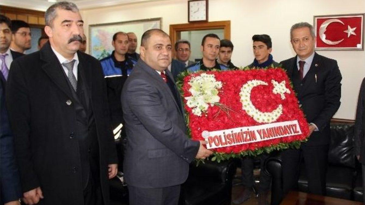 İstanbul Beşiktaş’ta 10 Aralık’ta meydana gelen hain terör saldırısı sonrası Muğla Emniyet Müdürü Hakan Çetinkaya’yı İl Milli Eğitim Müdürü Celalettin Ekinci, Müdür Yardımcıları, okul müdürleri ve öğrenciler ile Gençlik Hizmetleri ve Spor İl Müdürü Serkan Öçalmaz, Uluslar arası Gençlik Merkezi Müdürü Zülfikar Türedi ve Gençlik Merkezi bünyesindeki öğrenciler destek ziyaretinde bulundu.Bu ülke için, bayrak için, millet için geçmişte olduğu gibi bu gün de şehitler verildiğini belirten Muğla Emniyet Müdürü Hakan Çetinkaya, “Hainler hainliklerini devam ettirdiği müddetçe, hainler hainliklerinden bir adım geri adım atmadan, bizler de sonuna kadar mücadele etmeye kararlıyız. Devletimiz güçlüdür ve tüm kurumları ile ayaktadır. Allah’ın izniyle bunlarla başa çıkabilecek gücümüz de var, irademiz de var, inancımız da var. Yeter ki sizler yanımızda olun ve desteklerinizi esirgemeyin. Acımızı paylaştığınız için, yanımızda bulunduğunuz için çok teşekkür ediyorum” dedi.İl Milli Eğitim Müdürü Celalettin Ekinci ise bir gün önce ilçelerdeki İlçe Milli Eğitim müdürlükleri ve öğrencilerin İlçe Emniyet müdürlüklerini ziyaret ettiğini belirtti. Ekinci, “Biz Türk milleti olarak bir bütünüz. Asla yıkılmayacağız, asla dağılmayacağız ve bu vatanın hiçbir parçasını asla teslim etmeme iradesindeyiz. Vatan toprağımızın Misak-ı Milli sınırlarının her bir karışı bizim için çok değerlidir. Her bir santimetresi için her türlü bedeli ödemeye hazırız. Bizler de askerimiz gibi, polisimiz gibi bu ülke için canımızı vermeye hazırız. Türk Milli Eğitimi de Türk polisi ve Türk ordusu gibi bu Türk milletinin büyük ordusunun bir parçasıdır. Bizler sizlerin her zaman yanında ve destekçiniziz. Sıra bizlere geldiğinde de hiçbir zaman bu vatan toprağının savunması adına canımızı ortaya koymaktan hiçbir zaman tereddüt göstermeyeceğiz. Bu tür alçakça saldırılan bizi asla ve kata bu vatanı korutman ve kollamaktan caydıramayacaktır. Bugün burada gördüğünüz yen bir nesil var. Şehitlerimizin yerini almak için hazır yetişiyorlar. Bu vesile ile Emniyet teşkilatımızın ve Türk milletimizin başı sağ olsun” dedi.Milli Eğitim Müdürlüğü’nün ardından Muğla Emniyet Müdürü Hakan Çetinkaya’yı Gençlik Hizmetleri ve Spor İl Müdürlüğü bünyesinde hizmet veren Uluslar arası Gençlik Merkezi öğrencileri ziyaret etti. Ziyarette Gençlik Hizmetleri ve Spor İl Müdürü Serkan Öçalmaz ve Uluslar arası Gençlik merkezi Müdürü Zülfikar Türedi de hazır bulundu. Emniyet Müdürü Hakan Çetinkaya, destek ve ziyaretleri için teşekkür ederken, “Ülkemiz terörle mücadele sürecinden geçiyor. İstanbul’da menfur bir saldırı neticesinde polis teşkilatı mensuplarından ve vatandaşlarımızdan şehitlerimiz oldu. Bu acı bütün ulusça yaşadığımız ortak bir acı. Bu ülke, bu aziz bayrağımız kolaylıkla kazanılmadı. Bunu muhafaza etmesi ve koruması da çok kolay değil. Milletçe hepimiz birlik, beraberlik ve dayanışma içerisinde olursak ancak bu terör belası ile başa çıkabiliriz” dedi.Gençlik Hizmetleri ve Spor İl Müdürü Serkan Öçalmaz 10 Aralık’ta görevleri sadece sağlıklı bir ortamda spor yapılmasını sağlamak amacıyla görevleri başında olan polislerimiz ve maç çıkışında evlerine dönen vatandaşlarımızı hain terör saldırısında şehit verildiğini söyledi. Öçalmaz, “Bugün de Emniyet Müdürümüze destek olmak ve yanlarında olduğumuzu belirtmek amacıyla ziyarete geldik. Onlara ne kadar teşekkür etsek azdır. Terör belasının kökü kazılana kadar asker ve polisimizin mücadelesi ile bu terör örgütlerinin sonunun geleceğine inancımız tamdır” dedi.