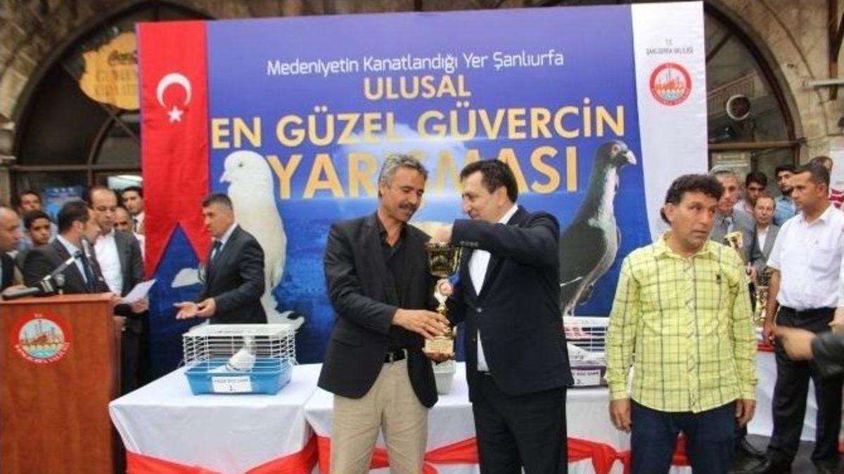 Şanlıurfa’da, ’medeniyetin kanatlandığı yer Şanlıurfa’ adlı En Güzel Güvercin Yarışması finalinde ilk üçe girenlere kupaları ve altın ödülleri verildi.Şanlıurfa’nın tarihi mekanı Gümrük Hanı’nda düzenlenen ’medeniyetin kanatlandığı yer Şanlıurfa’ adlı En Güzel Güvercin Yarışması finalinde ilk üçe girenlere kupaları ve altın ödülleri verildi. İki gün süren yarışmaya Türkiye’nin değişik illerinden birçok güvercin meraklısı katıldı. Yarışmanın sonunda finale kalanlara kupaları ve altın ödülleri verildi. Törene Şanlıurfa Valisi İzzettin Küçük, Büyükşehir Belediye Başkanı Nihat Çiftçi, Eyyübiye Belediye Başkanı Mehmet Ekinci ve çok sayıda protokol üyesi ile güvercin severler katıldı. Her dalda ayrı ayrı birinci, ikinci ve üçüncülerin seçildiği yarışmanın ödüllerini Şanlıurfa Valisi İzzettin Küçük, Büyükşehir Belediye Başkanı Nihat Çiftçi ve Eyyübiye Belediye Başkanı Mehmet Ekinci verdi. Ödüllerini alan yarışmacılar emeği geçenlere teşekkür ederken, Vali İzzetin Küçük yaptığı konuşmada, “Değişik illerden güvercin yetiştiricileri Şanlıurfa’ya akın etti ve yarışmaya katıldılar. Hepsine teşekkür ediyorum. Dereceye girenlere ödüllerini verdik. Güvercin yetiştiriciliği başta Şanlıurfa olmak üzere bölgede yüzyıllardır devam eden bir gelenek. Özellikle ikindiye doğru Şanlıurfa semalarında öbek öbek, grup gurup güvercin görürsünüz. Birçok aile bu işe gönül vermiştir. Bu şehrin taş evlerine, kapılarına baktığınızda bir kuş evi vardır. Güvercini seven bir halktır. Ben dereceye girenleri tebrik ediyorum" dedi.Şanlıurfa’da güvercin beslemenin bir yaşam biçimi olduğunu ifade eden Büyükşehir Belediye Başkanı Nihat Çiftçi ise, güzel bir yarışma olduğunu ifade ederek birçok ilden meraklısının yarışmaya katılmak için Şanlıurfa’ya geldiğini dile getirdi.Eyyübiye Belediye Başkanı Mehmet Ekinci de, güzel bir mekanda güzel bir şenlik düzenlendiğini ifade ederek, Şanlıurfa’nın özgürlük ruhunu ortaya çıkartması hususunda güzel bir çalışma olduğunu belirtti.