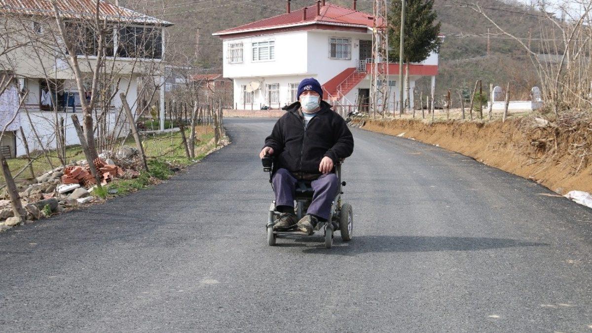 Ordu’nun Altınordu ilçesine bağlı Kovancı Mahallesi’nde yapımı tamamlanan sıcak asfalt çalışması vatandaşlardan tam not alırken en çok sevinenlerin başında engelli bir vatandaş geldi.