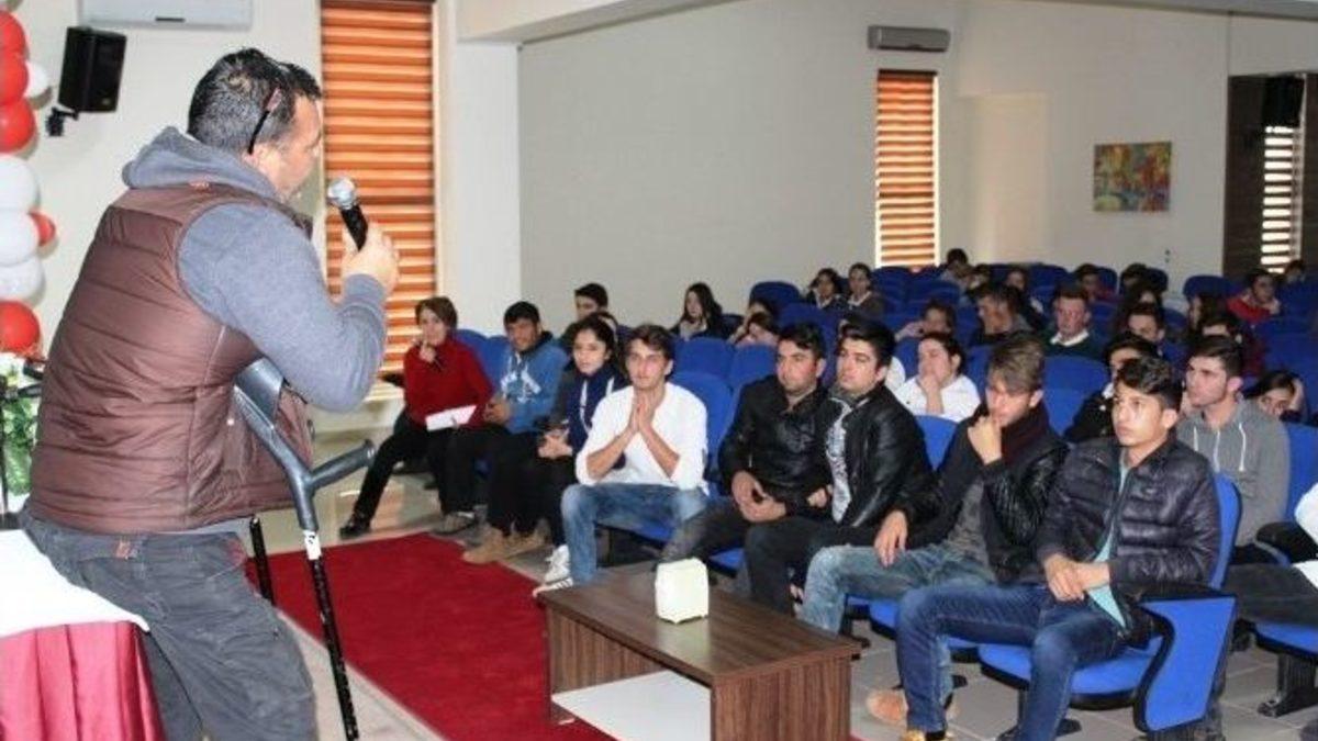 Balıkesir’in Ayvalık ilçesinde, 3 Aralık Dünya Engelliler Günü nedeniyle Cunda Mesleki ve Teknik Anadolu Lisesi öğretmen ve öğrencileri tarafından düzenlenen söyleşide engelli konuşmacılar, engelliği anlattı.Cunda Mesleki ve Teknik Anadolu Lisesi öğretmenleri Hatice Ağa, Güner Kars Türkdoğan, Salih Öz tarafından organize edilen söyleşide; engellilere yönelik yaptığı çalışmalarla Türkiye genelinde ses getiren Adil Sosyal, Tüm Engelli Dostları Grubu’nun Görme Engelli Koordinatörü Namık Tuncel ile ilçenin tanınmış gazetecilerinden ortopedik engelli Suat Salgın konuşmacı olarak katıldı.Söyleşiden çok salonu dolduran öğrencilerle sohbet havasında gerçekleşen etkinlikte konuşan Adil Sosyal Tüm Engelli Dostları Grubu’nun Görme Engelli Koordinatörü Namık Tuncel görme engelli bir birey olarak güncel hayatta yaşadıkları sıkıntıları dile getirdi.Engellilerin toplum içinde yaşadıkları sorunları çarpıcı bir dile ile anlatan Namık Tuncel, yaşadığı ilçede başta kaldırımlar olmak üzere sadece bir tane umumi engelli tuvaletinin bulunmasından duyduğu üzüntüyü ifade etti.Öğrencilerle teatral şekilde görme engelli bireye nasıl yaklaşılması ve yardımcı olunması gerektiğine dair açıklamalarda da bulunan Tuncel, engellilik konusunda önemli olanın; engelliye engelli gözüyle bakmamak olduğunu savundu.Etkinlikte konuşan Gazeteci Suat Salgın ise; engelli bireye; ‘Özürlü’, ‘Sakat’, ‘Topal’, ‘Kör’, ‘Deli’, ‘Sağır’ gibi nitelendirmelerin yaralayıcı olduğunu vurguladı.Türkiye Sakatlar Konfederasyonu’nda görev yaptığı yıllarda ülke genelinde engellilerin hayatlarını kolaylaştıracak yasaların bulunmadığını ve geçen yıllar içerisinde yapılan özverili çalışmalar sonrasında Engelliler Yasası’nın çıkarıldığını anlatan Salgın, öğrencilere gazetecilik konusunda da bilgiler verdi.