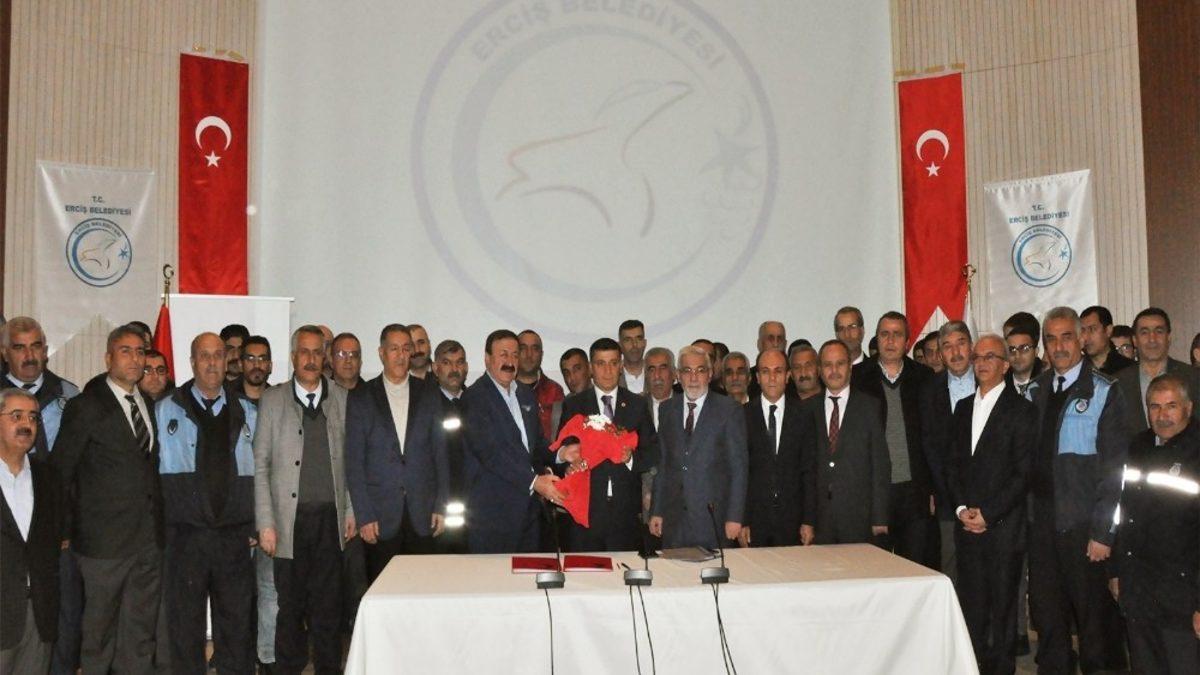 Erciş Belediyesinin konferans salonunda yapılan toplantıya Erciş Kaymakamı ve Belediye Başkan Vekili Nuri Mehmetbeyoğlu, BEM-BİR-SEN Genel Başkan Yardımcısı Medeni Sevinç, BEM-BİR-SEN Van Şube Müdürü Harun Altın ve Erciş Belediyesi memurları katıldı. Yapılan toplantıda, belediye başkanlığında görevli memurlar adına BEM-BİR-SEN yöneticileri ve Erciş Belediye Başkanlığı arasında sözleşme imzalandı.