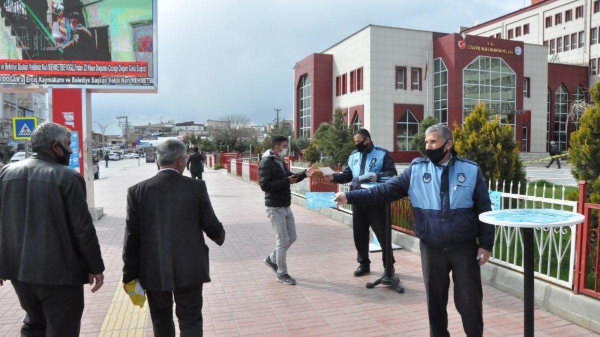 Dünya genelinde hızla yayılan ve ülkemizde de görülen korona virüs salgınına karşı çeşitli tedbirler alan ve ilçe genelinde sürekli dezenfekte çalışmalarını yürüten Erciş Belediye Başkanlığı, salgın hastalığa karşı alınabilecek önlemlere ilişkin çalışmalarına bir yenisini daha ekledi. Erciş Kaymakamı ve Belediye Başkan Vekili Nuri Mehmetbeyoğlu’nun talimatlarıyla zabıta ekipleri tarafından korona virüs salgın hastalığından korunma tedbirlerini içeren el broşürleri dağıtıldı.
