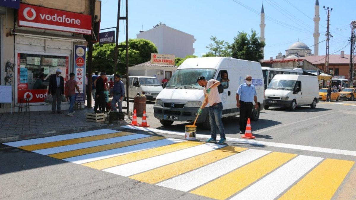 Van’ın Erciş Belediyesi, ilçe genelindeki caddelerde bulunan yaya geçitleri ve kasislerde boyama çalışması yaptı.