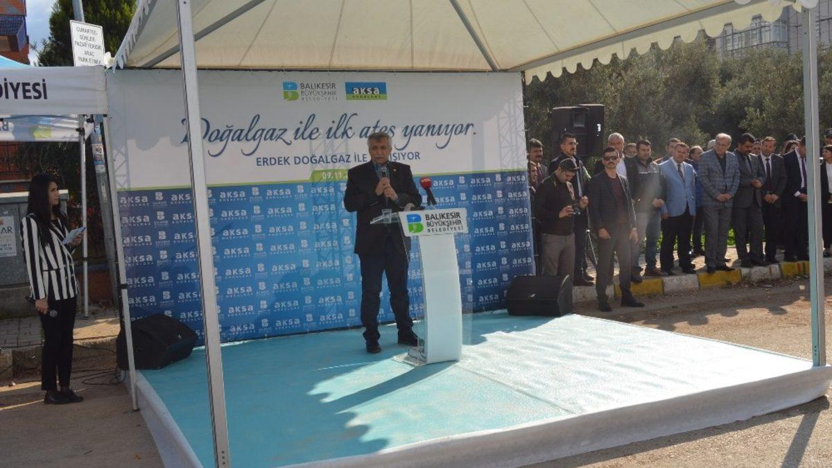 Balıkesir Büyükşehir Belediyesi tarafından doğalgazın Erdek’ gelmesi nedeniyle tören düzenledi. Piri Reis Camii’nin yanındaki alanda gerçekleşen törende ilk konuşmayı Erdek Kaymakamı Ekrem Çalık yaptı. Çalık, Erdek’e doğalgazın gelmesindeki talimatı nedeniyle Cumhurbaşkanı Recep Tayyip Erdoğan’a teşekkür etti.