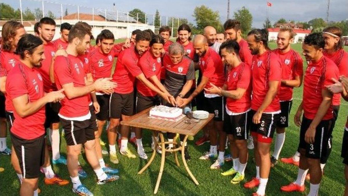 PTT 1. Lig ekiplerinden Samsunspor’da teknik direktör Erhan Altın’ın doğum günü nedeniyle pasta kesildi.Samsunspor Teknik Direktörü Erhan Altın 58 yaşına girdi. Futbolcular ve personel, teknik direktör Erhan Altın’ın yaş gününü unutmadı. Samsunsporlu futbolcular antrenman öncesi bugün Altın’ın yaptığı toplantı sonrasında teknik direktörlerine sürpriz yaparak sahaya, "Mutlu Yıllar Hocam" yazılı yaş pasta getirtti. Daha sonra Erhan Altın’ı omuzlara alarak mutlu gününü kutladılar. Kırmızı-beyazlılarda renkli yaş pastayı büyük bir mutlulukla kesen Erhan Altın, oyuncularına ve personele teşekkür etti.Kendisi için hazırlanan organizasyon nedeniyle duygulanan Erhan Altın, “Benim en büyüm mutluluğum sizlerle birlikte olmaktı. Allah’ıma şükürler olsun böyle bir ekibi bana nasip ettiği için. Hepinize teşekkür ediyorum. Bu pasta bizim inşallah sezon sonunda şampiyonlukla kutlayacağımız bir pasta olur” dedi.Takım kaptanı Musa Aydın da kesilen pastadan teknik direktör Altın’a kendi elleriyle ikram etti. Doğum günü organizasyonun ardından hafta sonu kendi evinde karşılaşacağı Giresunspor hazırlıklarına başlayan kırmızı-beyazlılar, idmana ilk olarak kondisyon çalışması ile başladı ve ardından basına kapalı olarak taktik çalışması ile devam etti.TAHA: “SEZONA İYİ BAŞLAMAK İSTİYORUZ”Ligin ilk maçlarının zor olduğunu belirten Samsunsporlu oyuncu Taha Yalçıner, “Giresunspor maçı ile lige başlıyoruz. Ligin ilk maçları her zaman zor olmuştur. Bunun bilinceyiz. Karadeniz derbisine hazırlıklarımızı tamamladık. Maça 3 puan parolası ile çıkacağız. Sezona iyi bir başlangıç yapmak istiyoruz. Hedeflerimiz var. Geçen sene son maçta çıkamadığımız bir Süper Lig var. İnşallah onu bu sene başarmak istiyoruz. İlk maçta iyi bir başlangıç yapıp, lige güzel başlarız” diye konuştu.Kırmızı-beyazlı taraftarlara da seslenen Taha, “Süper Lig yolunda geçen sene onların çok büyük desteği oldu. Bu senede bize aynı desteği tribünleri doldurarak göstermelerini istiyoruz. Onlar bizim için itici bir güç oluyor. Özellikle içerdeki maçlarda çok büyük bir baskı kuruyoruz. Geçen sene onların sayesinde çok maç aldık. Aynı özveriyi bu sene de bekliyoruz. İnşallah taraftarımız ile birlikte iyi bir sezon geçiririz ve hedeflerimize ulaşırız” şeklinde konuştu.İdmanda ayrıca hafif sakatlıkları bulunan Canberk Aydın, Recep Niyaz ve Harun Gürbüz düz koşu yaptı.
