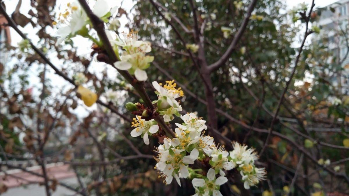 Samsun’da mevsimi şaşıran erik ağacı Aralık ayında çiçek açtı.