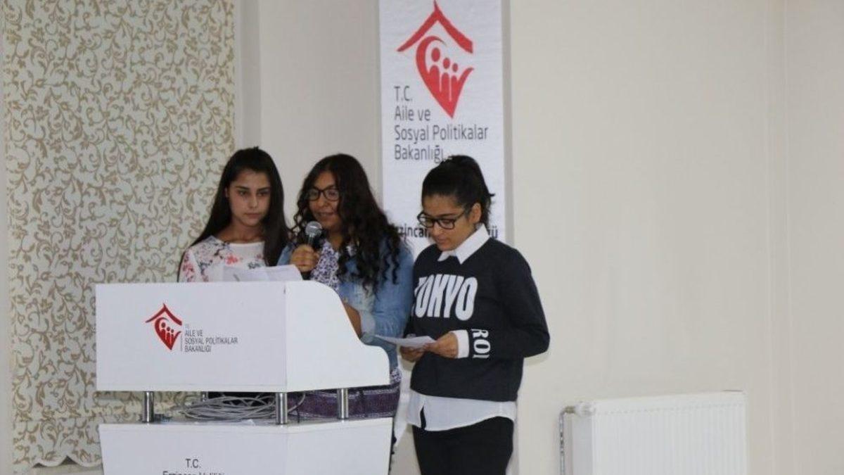 Erzincan’da Dünya Kız Çocukları Günü dolayısıyla Aile ve Sosyal Politikalar İl Müdürlüğüne bağlı hizmet veren Çekom ve Çocuk Evleri Sitesinde bakım ve koruma altında olan kızlar tarafından program düzenlendi. Programa İl Müdürü Muhammer Doğan, İl Müdür Yardımcıları Mehmet Rufai Yağcıoğlu ve Yunus Albayrak, Erzincan Müftülüğü Vaizesi Latife Aras, Kuruluş Müdürleri ve kızlar katıldı.Program çocukların hazırlamış olduğu şiir, Hadis-i Şerif ve kısa hikâyelerle başladı. Erzincan Müftülüğü Vaizesi Latife Aras tarafından İslam da Kız çocuklarının yeri ve önemi ile ilgili çocuklara bilgiler verildi. Programda ayrıca Sosyal Hizmet Uzmanı Melek Oktay ve PDR Meslek elamanı Elif Mutlu tarafından çocuklara etkili iletişim kurma yolları stresle başa çıkma yolları hakkında bilgilendirmeler yapıldı.Günün anlam ve önemi hakkında konuşma yapan İl Müdürü Muhammer Doğan ; "Türkiye’nin girişimleriyle Birleşmiş Milletler nezdinde her yıl 11 Ekim tüm dünyada Kız Çocukları Günü olarak kutlanmaktadır. Bizlerin tüm çalışmalarının hedef kitlesi şüphesiz ki siz geleceğimiz olan çocuklarımızdır. Sizlerin kaliteli bir yaşamı ve aydınlık bir geleceği olmasını hedefliyor, çalışmalarımızı bu doğrultuda planlıyoruz. Elbette bu süreçte sizlere de düşen görevler vardır. Bunlardan biri de hepinizin bu imkanların kıymetini bilmesi, size kucak açan bu büyük devlete en faydalı şekilde hizmet verebilecek konumlara gelmeniz ve bunun içinde derslerinize gerekli ehemmiyeti vermenizdir. İsteğimiz akademik başarınızla, sosyal etkinliğinizle, spor faaliyetlerinizle hep ön planda olmanız ve bizleri her daim gururlandırmanızdır. Tüm kız çocuklarımızın 11 Ekim Dünya Kız Çocukları günlerini kutlar sağlıklı uzun ömürler dilerim." dedi.