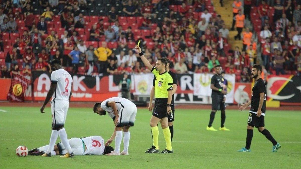 TFF 1. Lig’in 5. haftasında Eskişehirspor, dün sahasında Ümraniyespor ile karşı karşıya geldi. Son dakikalarının yoğun tempoda geçtiği karşılaşmada orta hakem Abdulkadir Bitigen’in verdiği kararlar taraftarların tepkisini çekti.TFF 1. Lig ekiplerinden Eskişehirspor, cezalı olduğu 2 mücadelenin ardından bu sezon iç sahada ilk seyircili maçına çıktı. Düşük bir tempo ile başlayan maçın ilk yarım saati ağırlıklı olarak orta saha mücadelesi ile geçti.Karşılaşmanın başlangıcından itibaren orta hakem Abdulkadir Bitigen’in aldığı kararlar iki takımı da memnun etmedi. Çalınan hemen her düdükte Eskişehirsporlu ve Ümraniyesporlu futbolcular, Bitigen’e tepki gösterdi. Ümraniyespor’un 1-0 öne geçtiği dakikadan sonra kaleci Burak Öğür’ün topu oyuna sokarken gösterdiği yavaş hareketler, iki takım arasındaki ipleri iyice gererken tartışmaları da ateşledi. Daha sonra Eskişehirsporlu bir taraftar sahaya girerek, kaleci Burak’ın yanına doğru koştu. Bu esnada spor şube ekipleri ve saha içi güvenlik görevlilerinin taraftara müdahalesiyle olay büyümeden taraftar dışarı çıkarıldı. Tribünlerdeki binlerce taraftar, hakem Bitigen’i uzun süre ıslıklayarak protesto etti. Karşılaşmanın 84’üncü dakikasında her iki takım oyuncuları arasında gerginlik artarken maç da yaklaşık 8 dakika duraksadı. Taraftar ve futbolcuların karşılaşma esnasında gösterdiği tepki objektiflere de yansıdı.