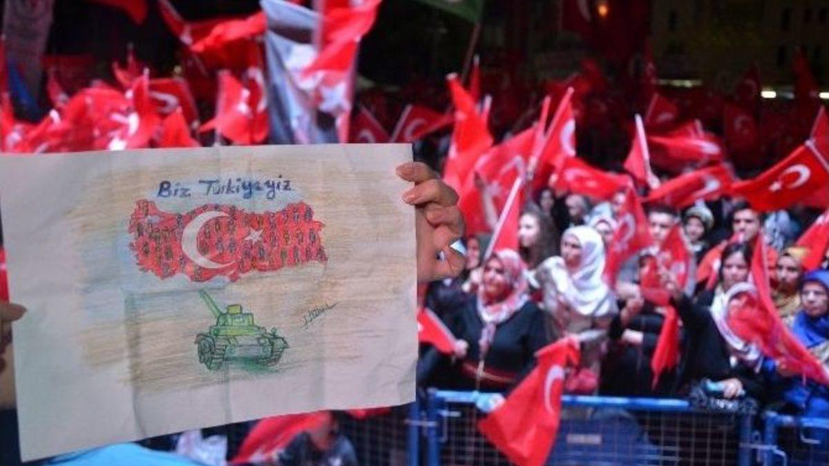 Eskişehir’de 15 Temmuz gecesi başlayan demokrasi nöbeti, 5. gecesinde de devam ediyor.Tüm Türkiye’de darbe girişimine karşı tepkiler devam ederken, Eskişehir’de de Vilayet Meydanı’nı dolduran binlerce vatandaş demokrasi nöbetine katıldı. Meydanda sadece Türk bayrakları yer alırken, atılan sloganlar ile darbe girişimine karşı tepkiler dile getirildi. Cumhurbaşkanı Recep Tayyip Erdoğan’ın "Tamam" diyeceği güne kadar meydanlarda bulunmaya devam edeceklerini dile getiren vatandaşlar, birlik vurgusu yapmaya devam ettiler. Vilayet Meydanı’nda toplanan demokrasi nöbetçilere ise Osman Vahit Özdal hitap etti. Kur’an-ı Kerim tilaveti ile başlayan program, ilahiler ile devam etti.Öte yandan isminin Hülya olduğu öğrenilen küçük bir kız çocuğunun yaptığı resim sahnede sergilendi. Resimde Türkiye haritası ve üzerindeki insanlar, kendilerine doğru gelen tanka karşı duruyorlar. Resmin üstünde ise "Biz Türkiye’yiz" yazısı yer alıyor. Sahneye ulaşan resmi yapan minik kız meydanda bulunamazken, vatandaşlar alkışlarla Hülya’ya tebriklerini ilettiler.