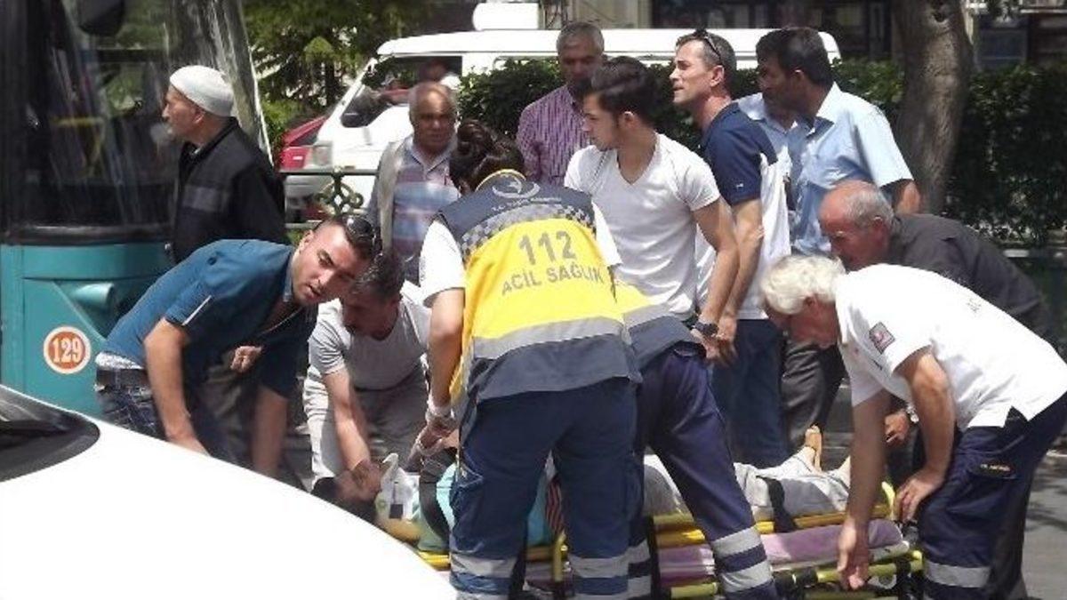 Eskişehir’de, aniden kırmızı ışıkta duran halk otobüsünün açık olan kapısından düşerek yaralandığı belirtilen kadın hastaneye kaldırılarak tedavi altına alındı.Kaza, öğlen saatlerinde Odunpazarı Malhatun heykelinin karşısındaki trafik ışıklarında meydana geldi. Hareket halinde olan 26 H 129 plakalı halk otobüsü, tam trafik ışıklarının olduğu yere gelince, kırmızı ışık yanması üzerine ani olarak durdu. Bu sırada Birsen Alkan isimli kadın, otobüsün açık olan ön kapısından aşağıya düştü. Yaralanan kadına çevredeki vatandaşlar yardım etti. Çağrılan 112 Acil Servis ekiplerinin ilk müdahalesinin ardından Devlet Hastanesi’ne kaldırılan kadının sağlık durumunun iyi olduğu, tedavisinin sürdüğü öğrenildi.Bu arada görgü şahitleri, halk otobüsü ani olarak durunca kontrolünü kaybeden kadının yere düştüğünü, hayati tehlikesinin olmadığını, ancak vücudunda kırık ve çıkıklar olabileceğini anlattılar. Araç kapısının sıcaklar yüzünden açık tutulduğunu tahmin ettiklerini anlatan görgü şahitleri, halk otobüsünün hareket halinde iken kazanın gerçekleşmesi halinde daha ciddi bir olay yaşanabileceğini belirttiler.