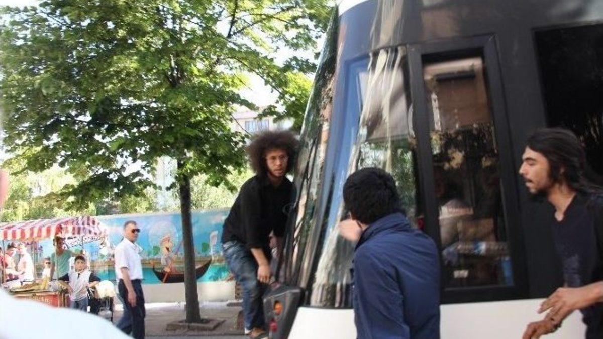 Eskişehir’de hayvan katliamlarına tepki eyleminde tramvayın çarptığı 1 kişi yaralanırken, vatmanın tramvayı kasti olarak grubun üstüne sürdüğü iddia edildi.Edinilen bilgiye göre, Üniversite Caddesi’nde bir alışveriş merkezi önünde toplanan Hayvanları Koruma Derneği ve Eskişehir Anarşi İnisiyatifi üyesi yaklaşık 60 kişi, burada bir süre slogan attıktan sonra Eskişehir Büyükşehir Belediyesi’nin önüne doğru yürüyüşe geçti. Grup üyeleri, İsmet İnönü Caddesi üzerine geldiklerinde tramvay yolundan yürümeye başladı. Bu sırada aynı istikamette hareket eden tramvay, yolu kapatan gruba yolu açması için bir süre korna çaldı. Buna rağmen grup tramvay yolunu trafiğe açmadı. İddiaya göre daha sonra vatman, tramvay yolunda yürümeye devam eden grubun üzerine doğru sürdü. Tramvayın çarptığı gruptan 1 kişi yaralandı. Grup üyeleri tramvaya tekme ve yumruklarla saldırırken, kadın tutunarak hareket eden tramvayın önünde gitmeye başladı. Tepkiler üzerine tramvay bir süre ilerledikten sonra durdu. Tramvaya tutunarak bir süre önünde giden kadın ve diğer grup üyeleri vatmana tepki gösterdi. Tepkilerin ardından tramvay yoluna devam etti. Kısa sürede olay yerine gelen 112 Acil Servis ambulansı, tramvayın çarpması sonucu hafif yaralanan Gözde isimli kişiyi Yunus Emre Devlet Hastanesi’ne kaldırdı.Yürüyüşe devam eden grup, Büyükşehir Belediyesi önünde yapılan basın açıklamasının ardından dağıldı."TRAMVAYI BİLEREK ÜSTÜMÜZE SÜRDÜ"Eskişehir Hayvanları Koruma Derneği Başkanı Duygu Kurt, vatmanın tramvayı grup üyelerinin üstüne bilerek ve isteyerek sürdüğünü iddia etti. Kurt, yaralının sağlık durumunun iyi olduğunu ve yaralının muhtemelen vatmandan şikayetçi olacağını kaydetti.