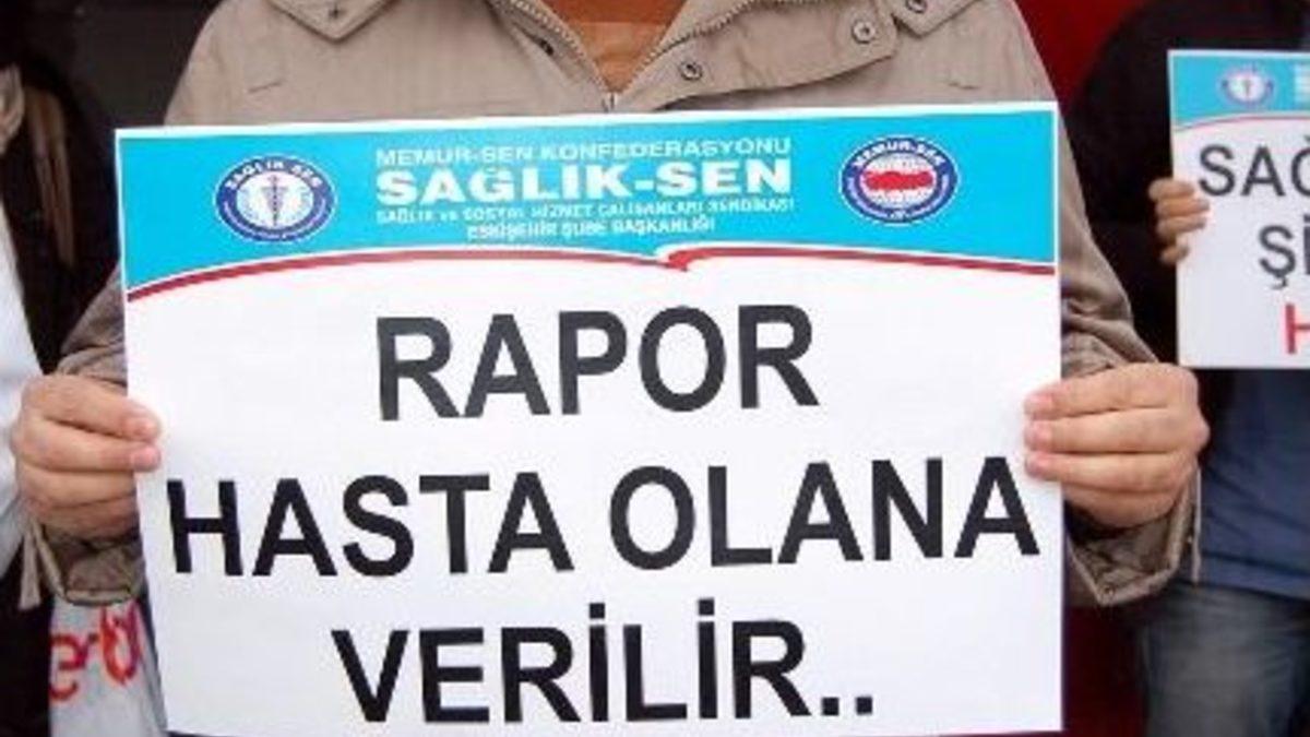 Eskişehir Devlet Hastanesi'nde, yakınına rapor vermediği gerekçesiyle kadın doktorun darp edilmesi Sağlık-Sen ve Tabip Odası üyeleri tarafından protesto edildi. Darp edilen kadın doktorun ise 7 gün iş göremez raporu aldığı bildirildi.