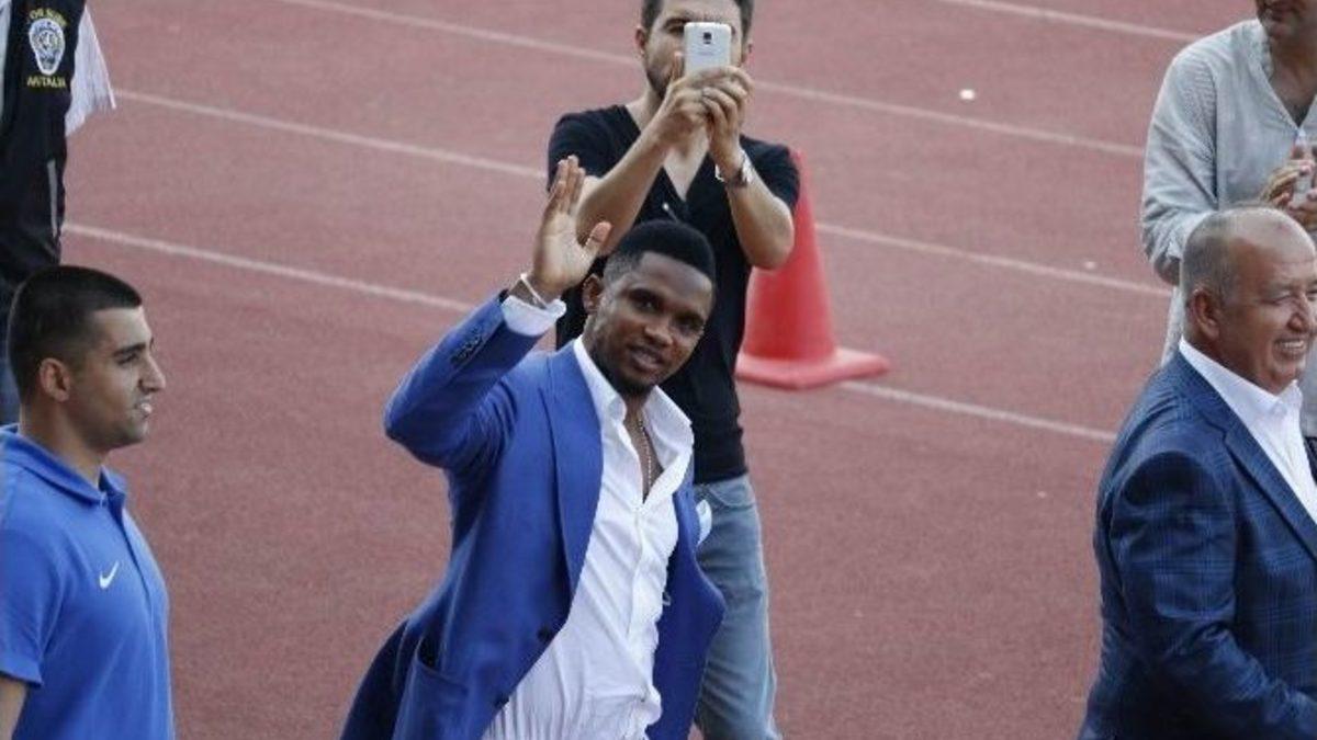 Spor Toto Süper Lig’in yeni ekibi Antalyaspor’un flaş transferi Samuel Eto’o, Akdeniz Üniversitesi Stadyumu’nda düzenlenen törenle 3 yıllık sözleşmeyi imzaladı.Spor Toto Süper Lig ekiplerinden Antalyaspor’un yıldız transferi Samuel Eto’o, Akdeniz Üniversitesi Stadı’nda düzenlenen imza töreninde taraftarı selamladı. Taraftarlar ise Eto’o’yu, "Seni seviyoruz Eto’o" tezahüratlarıyla karşıladı. Eto’o üçlü çekmesini istediği tarafları da kırmadı. Yıldız oyuncu cep telefonu ile taraftarların coşkusunu görüntüledi.Antalyaspor Kulübü Başkanı Gültekin Gencer ile sahaya kurulan platformda yer alan Eto’o, kendisini üç yıllık kırmızı-beyazlı renklere bağlayan sözleşmeye imzayı attı. Törende Samuel Eto’o’nun yanında futbolcunun transferinde kulübe maddi destek sağladığı belirtilen IATI Ceo’su Levent Aydın, basın sözcüsü Hasan Ali Ceylan, yönetim kurulu üyesi Salman Aksal da yer aldı. Stadyumu ise yaklaşık 1000 kişilik kırmızı-beyazlı taraftar grubu doldurdu."LİGDE BAŞARILI OLACAĞIZ"Törende konuşan Başkan Gencer, ligde başarılı bir sezon geçireceklerine inandıklarını ifade ederek, "Tribünün dolu olması bize büyük mutluluk verdi. 33 bin kişilik stadyumda en zirvede olacak olan takımın göstergesiyiz. Süper Antalyaspor’da dünya yıldız Eto’o’yu kadroya katarak ve diğer yıldızları kadroya katarak, ligde başarılı olacağız" dedi."ÇOK GÜZEL ŞEYLERE İMZA ATACAĞIZ"Konuşmasına ’Hoşgeldiniz’ diyerek başlayan Eto’o, “Antalyaspor camiasına teşekkürler. Benim burada bulunmamda, transferimde emeği gecen herkse teşekkür ediyorum. Geldiğim ilk günden bu yana beni çok iyi karşılama yapan taraftara teşekkür ediyorum. Takımdan beklentim takım arkadaşlarım hocalarım ve başkanlarıma, küçük ama çok güzel bir tarih yapacağız. Çok güzel şeylere imza atacağız. Tekrar büyük başkanımıza ve yöneticilere beni burada getiren herkse ve taraftara teşekkür ediyorum” dedi.Ardından Eto’o kendisini 3 yıllığına kırmızı-beyazlı renklere bağlayan sözleşmeye imzayı attı. Daha sonra 9 numaralı formayı giyen Eto’o, taraftarları selamladı. Elinde bulunan topu bir taraftara attı.