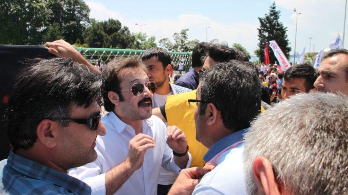 Konuşmaların ardından Anıt girişine siyah bez üzerine kırmızı yazı ile ‘Taksim Gezi Parkı’ yazılı pankart asıldı. Polisin pankartı indirme çabasına karşı çıkan bir gurup eylemci kısa süre polisle tartıştı. Tartışma esnasında guruptan bir kişinin ‘Pankartı buradan indirirseniz bu insanları tutamam’ sözü tansiyonu yükseltti. Polis ile gurup üyelerinin arasında ki tartışma Komiser Nizam Balkan’ın ‘Sizin istediğiniz olaya izin vermemek için buradan ayrılıyoruz’ sözü ile tartışma sona erdi.