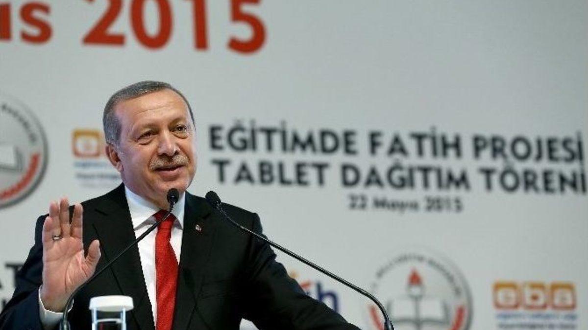 Cumhurbaşkanı Recep Tayyip Erdoğan, “Eğitim kimsenin tekelinde değildir, olamaz. Eğitim de, sağlık da, ulaşım da, diğer tüm hizmetler de sadece mutlu azınlığın, sadece parası olanların değil, tüm milletin hakkıdır. Bize devlet olarak düşen nedir? Bütün gençlerimize, evlatlarımıza eğitim yapabilecekleri imkanı hazırlamaktır” dedi.Cumhurbaşkanı Erdoğan, Milli Eğitim Bakanlığı’nın Fatih Projesi kapsamındaki tablet dağıtım törenine katıldı. Cumhurbaşkanı Erdoğan, yaptığı konuşmada kendi öğrenciliği dönemini anlatarak, "Okula ulaşmak için kilometrelerce yol yürümek gerekiyordu, ben 45 dakikada ilkokula gidiyordum. O kadar uzun bir mesafe. Taşımalı sistem filan geç o işi. Ama şimdi biz Anadolu’nun en ücra köşesinde taşımalı sistemlerle de olsa yavrularımızı okula gönderiyoruz. Ortaöğretim hayatım zaten yatılı geçti. Biz o kara günleri çocuklarımız yaşamasın diye eğitim alt yapısını güçlendirmek için çabaladık” ifadelerini kullandı.Eğitim konusunda büyük ilerleme kaydettiklerini söyleyen Erdoğan, “Ülkemin yüzde 75-80’ninde 30 kişilik ve altı sınıflar var. Bunun üstünde 40-50’ye kadar çıkıyor. Ama onlar da telafi edilecek. Burada koyduğumuz hedef 30 ve altı. Öyle sınıflarımız var ki, sınıfta 20 öğrenci var. Bunlar istisna, 40-50 öğrenciye ulaşan yerler var. Bunlar aşırı göç alma nedeniyle bu sıkıntıları yaşıyoruz. 2002’de Milli Eğitime bütçeden ayrılan pay neydi biliyor musunuz? 7,5 milyar, yani 7,5 katrilyon eski parayla. 2014 yılının sonunda neydi? 56 milyar düzeyine yükseldi. 56 katrilyon. 30 bin adet bilişim teknolojisi sınıfı kurup, okullarımıza 1 milyon adet bilgisayar gönderdik. Geldiğimizde yaptığımız ilk işlerden biri buydu. 2002 yılında 346 bin 600 adet olan derslik sayısının, ki bu sayıya 79 senede ulaşıldı, biz 12 senede 234 bin 473 adet derslik ilavesiyle bu sayıyı 581 bin 133’e ulaştırdık” şeklinde konuştu.Eğitimde 4+4+4 sistemine de değinen Cumhurbaşkanı Erdoğan, “Eğitimde 4+4+4 sistemine geçerek, darbe dönemi haksızlıklarına, adaletsizliklere, katsayı ile çıkan haksızlıklara son verdik. Meslek liseleri, imam hatipler, diğer düz liseler, Anadolu, fen, bütün bunların arasındaki ayrımcılığı ortadan kaldırdık. Bu bir yarış. İlim yarış, bilgiyi nerede bulursak alırız. İşin içerisinde bu başı örtülü, bu başı açık ayrımı yapmaya kimsenin hakkı yok. Okullarda kılık kıyafeti serbest bıraktık, bunları biz yaptık. Bakın şimdi Danıştay kararını açıkladı. Ne dedi? ‘Ortaokulda, lisede başörtüsü serbesttir’ dedi. Danıştay’ın aldığı bu karar bir adaletsizliğin giderilmiş olmasıdır. Meslek lisesi mezunları, imam hatip lisesi mezunları üniversiteye şu katsayıya tabidir, bu katsayıyı halledebilirse geçer. Bu adaletsizlik değil mi? Aynı soruları o da cevaplandırmayacak mı? Cevaplandıracak. Niye böyle bir engel koyuyorsun? Bu engeller kalktı. Benim iki çocuğum da başörtülü oldukları için Türkiye’de üniversite okuyamadılar. Yurt dışında okudular. Erkek evladımın bir tanesi aynı şekilde katsayıdan dolayı yüksek puan almasına rağmen Boğaziçi’ne puanı tutmasına rağmen katsayıdan dolayı okuyamadı. O da yurt dışına gitti ve Harvard’da mastırını yaptı. Demek ki oluyormuş. Niye engelliyorsunuz? Büyük kızım aynı şekilde imam hatibi bitirdi, Amerika’da okudu ve Amerika’nın en ünlü üniversitesinde de doktorasını yaptı. Demek ki oluyor. Ben diyorum ki, bütün gençlerimizin önünü açmaya mecburuz. Çünkü başarı burada gizli. Bize düşen onlara en ideal anlamda ilmi vermek, bilgiyi vermek, yavrularımızın muasır medeniyetler seviyesinin üstüne çıkmasını hazırlamaktır. Hukuk ve adaletten, Kur’an ve siyer öğrenimine kadar pek çok yeni dersi müfredata yerleştirdik. Gençler şunu bilmenizi istiyorum; eğer bir nesil tarihini bilmiyorsa, bir nesil dilini bilmiyorsa, bir nesil dinini bilmiyorsa o neslin geleceği yoktur” diye konuştu.Yoksulluk nedeniyle okula gidemeyen öğrencilere burslar verdiklerini hatırlatan Erdoğan, şöyle devam etti:“Bugün Türkiye’de maddi imkansızlık nedeniyle okuluna gidemeyen öğrenci sayımız yok denecek seviyededir. Bir büyük atılım yaptığımız alanlardan biri de üniversiteler. 2002 yılında ülkemizde 76 üniversite vardı. Ama şu anda ülkemizde vakıf üniversiteleri dahil 193 üniversite var. Üniversitesi olmayan ilimiz kalmadı. Öğrenci üniversiteye değil, üniversiteyi öğrencinin ayağına götürdük. Yaptığımız iş bu. Bizler bu konuda rahatız. Tabii atılması gereken daha çok adım var. Bizlerin eleştiri noktasında bir sıkıntımız yok. Bazıları diyor ki, Fatih Projesi sona erdi. Tablet bilgisayar dağıtımı artık yapılmayacak. Neye dayanarak söyledikleri belli değil. Madem Fatih Projesi sona erdi, bugün dağıtılan 700 bin tablet bilgisayara ne diyeceksiniz? Hatta gelecek yıldan itibaren dağıtılacak 10 milyon 600 bin ihalesi şu anda yapıldı, neticelenecek, ilan edilecek, buna ne diyeceksiniz? Siyaseti dürüst yaparsanız, ülke de kazanır, millet de kazanır. Siyaseti çirkin yaparsanız, ülke de kaybeder, millet de kaybeder. Çamur at izi kalsın mantığıyla yapılan siyasetin kimseye, ülkemize, evlatlarımıza faydası olmaz. Yine birileri çıkmış, ‘Bu kadar üniversite açılması hatadır’ diyor. Burada şunu çok açık bir şekilde ifade etmek istiyorum, eğitim kimsenin tekelinde değildir, olamaz. Eğitim de, sağlık da, ulaşım da, diğer tüm hizmetler de sadece mutlu azınlığın, sadece parası olanların değil, tüm milletin hakkıdır. Bize devlet olarak düşen nedir? Bütün gençlerimize, evlatlarımıza eğitim yapabilecekleri imkanı hazırlamaktır.”Sağlıktaki reformlarla ilgili de bilgi ve