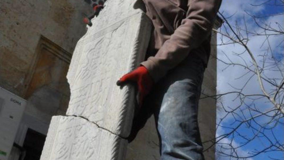 Ancak geçen yıl yoğun kar yağışına daha fazla dayanamayan mezar taşı, onarıldığı bölmeden kırıldı. Yere düşen mezar taşı caminin imamı tarafından fark edilerek koruma altına alındı. Edirne Müzesi restoratörleri tarafından onarımdan geçirilen mezar taşları, tekrar yerine konuldu.