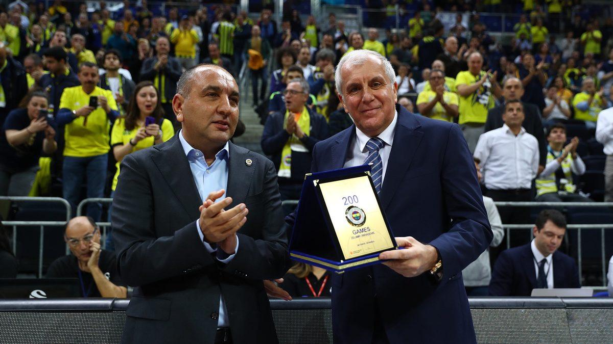 Bu arada Sarı-lacivertlilerin başında 200'üncü EuroLeague maçına çıkan Zeljko Obradovic, bu özel akşamın anısına hazırlanan plaketi Başkan Vekili ve Basketbol Şube Sorumlusu Semih Özsoy'un elinden aldı.