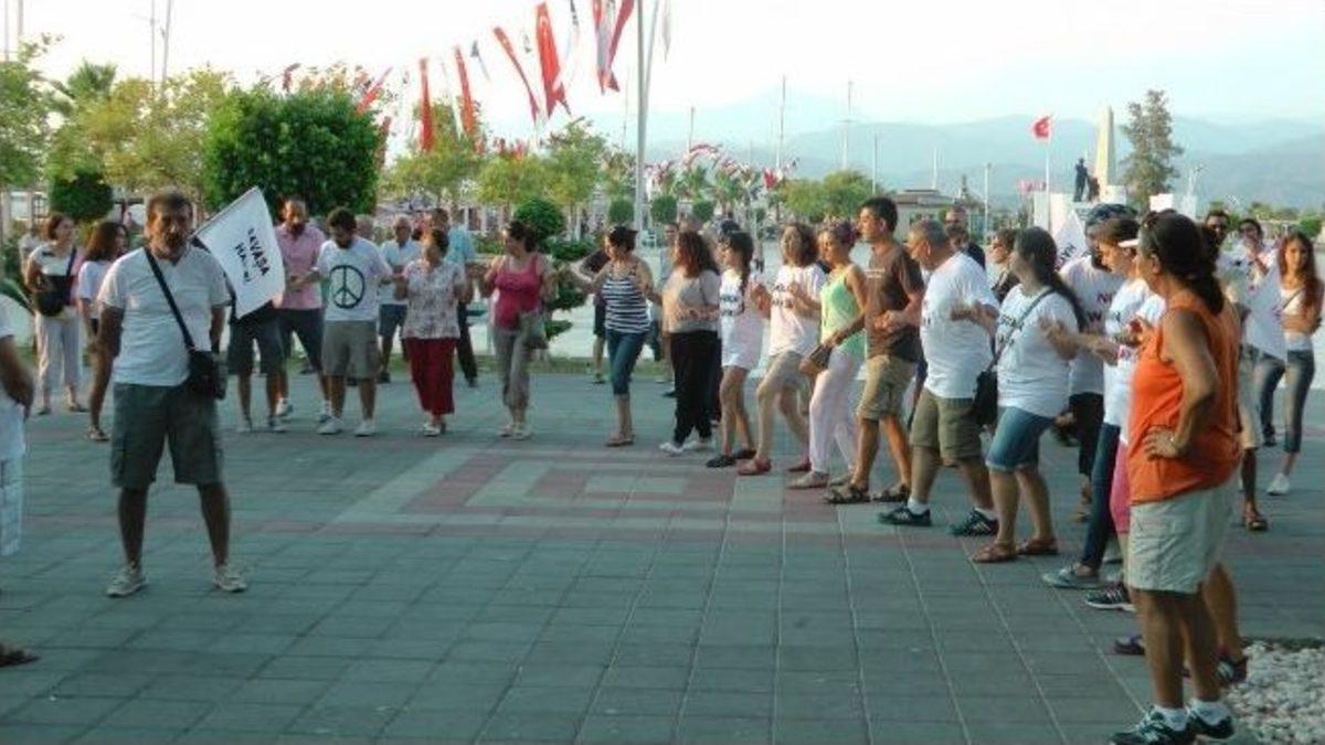 Dünya Barış Günü etkinlikleri kapsamında Fethiye’de de sivil toplum kuruluşları bir araya gelerek insan zinciri oluşturup “savaşa hayır” dediler.Üzerlerinde “savaşa hayır”yazılı tişörtler bulunan yine "Savaşa Hayır ve Barış hemen şimdi” yazılı afişler taşıyan KESK’e bağlı sendikaların başkan ve üyeleri Fethiye’de maliye kavşağında bir araya gelerek Fethiye Belediyesi Kültür Merkezi müdürlüğüne kadar el ele zincir oluşturup sloganlar attılar. Bisikletlilerin de katıldığı eylem sırasında Fethiye Emniyet Müdürlüğü ekipleri çevrede güvenlik önlemi aldı. Savaşa hayır sloganlarının atıldığı insan zinciri oluşturma eyleminin ardından kalabalık grup Fethiye Belediyesi Kültür merkezi önünde bir araya geldi. Burada türküler eşliğinde devam eden eylemde halaylar da çekildi.KESK adına yapılan basın açıklamasında, bugün dünyanın tüm meydanlarında barış çığlıklarının yankılandığını belirtilerek "Ülkemiz, Dünya Barış Günü'ne savaş tamtamlarının çaldığı, başını ABD'nin çektiği emperyalist işgalcilerin Suriye'ye yapılacak müdahaleye bahaneler ürettiği bir zamanda giriyor. Burada toplanan ve her türlü savaşı, tüm canlı varlıklara uygulanan şiddeti cinayet olarak sayan bizler el ele vererek 'Savaşa hayır' diyoruz" denildi.