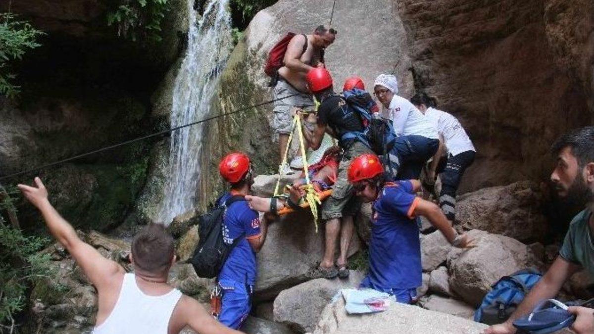Muğla’nın Fethiye ilçesinde çıktığı doğa yürüyüşünde kayalıklara düşerek yaralanan kişi, Ulusal Medikal Kurtarma Ekipleri (UMKE) tarafından 2 saatlik çalışmayla kurtarılarak hastaneye kaldırıldı.İstanbul’dan kardeşiyle tatile gelen Vedat Aras (18), doğa yürüyüşü yapmak için Kelebekler Vadisi’ne gitti. Şelalelerin bulunduğu parkurda yürüyen Aras, dik bir yamacı halat yardımıyla tırmandıktan sonra dengesini kaybederek yaklaşık 10 metre yüksekten kayalıklara düştü. Yaralanan Vedat Aras’ın kardeşi Mehmet Aras, sağlık ekiplerini arayarak durumu bildirdi. Sağlık ekipleri, zorlu arazi koşulları nedeniyle UMKE’den yardım istedi. UMKE, karadan ulaşımın olmadığı Kelebekler Vadisi’ne gitmek için Ölüdeniz Mahallesi’ndeki Belcekız Plajı’ndan sürat teknesiyle vadideki plaja indi. 112 Acil Sağlık ekipleriyle yaklaşık 2 kilometre yürüyen UMKE, kazazedeye ulaştı.Düşme sonucu başından yaralanan Aras’ın kayalıklardan güvenli şekilde indirilmesi için halatlar yardımıyla istasyon kuruldu. UMKE’nin kurtarma çalışmalarına Kelebekler Vadisi’nde dağcılık eğitimi veren Dağcılık Federasyonu Antrenörü Murat Salim Saran da destek verdi. Sedyeye alınan Aras, kurulan istasyon yardımıyla yaklaşık 500 metrelik kayalık araziden düz zemine indirildi.SEDYEYLE 2 KİLOMETRE TAŞINDIKazazede yaklaşık 2 kilometre boyunca sedyeyle taşınarak, plajda bekleyen sürat teknesine alındı. Belcekız Plajı’na yanaşan sürat teknesinden indirilen Aras, ambulansla ilçedeki özel bir hastaneye kaldırıldı. Hastanedeki tedavisi süren Aras’ın sağlık durumunun iyi olduğu öğrenildi.UMKE sorumlusu Mustafa Eren gazetecilere yaptığı açıklamada, karadan ulaşımın olmadığı bölgeye deniz yoluyla gidip, 2 kilometre yürüyerek kazazedeye ulaştıklarını söyledi. Eren, bölgedeki kayalıkların kaygan ve tehlikeli olduğunu, kazazedenin de dengesini kaybederek düşme sonucu başından yaralandığını dile getirdi. Kazazedeyi ilk müdahalesini yaptıktan sonra halatlar yardımıyla kayalıklardan indirip tekneyle ambulansa ulaştırdıklarını kaydeden Eren, başından aldığı darbe sonucu bilinci tam olarak yerinde olmayan kazazedenin tedavisinin sürdüğünü bildirdi.
