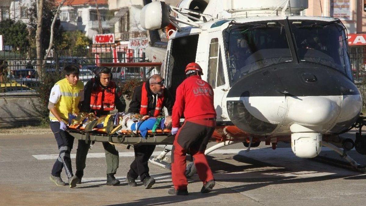 Muğla’nın Fethiye ilçesinde, dünyaca ünlü Babadağ’dan yamaç paraşütüyle havalanan Çinli turist ile paraşüt pilotu 15 metre yükseklikten kayalıklara düşerek yaralandı. Yaralılar kayalıklardan helikopterin yardımıyla kurtarıldı.Edinilen bilgiye göre, Fethiye’ye tatil için gelen Çinli Xujia Lin (27), yamaç paraşütüyle uçmak için Ölüeniz’ geldi, yamaç paraşütü pilotu Serdar Çözer (41) ile birlikte Babadağ’ın 1200 metre pistine çıktı. Lin ve Çözer Babadağ’ın 1200 pistinden yamaç paraşütüyle atlayış yaptı. İkilinin paraşütü yerden yaklaşık 15 - 20 metre yüksekteyken termik rüzgar nedeniyle kapandı. 15-20 metre yükseklikten Babadağ’ın eteklerindeki, kayalıklara düşen Çinli turist kazayı hafif sıyrıklarla atlatırken, yamaç paraşütü pilotu Çözer, başına aldığı darbe nedeniyle yerde hareketsiz kaldı. Muğla 112 Komuta Kontrol Merkezi’ni cep telefonundan arayan ikili yardım istedi. Arazinin sarp oluşu nedeniyle bölgeye 112 Acil Servis ekibi ile birlikte Ulusal Medikal Kurtarma (UMKE) Fethiye ekibi de bölgeye sevk edildi.Kayalıklara tırmanarak kaza yerine ulaşan UMKE ekibi kayalıkların üzerine düşen Çözer ve Lin’i sağlık kontrolünden geçirdi. Başına aldığı darbe nedeniyle beyin travması geçirdiği tespit edilen pilot Çözer’in kayalık bölgede sedyede taşınmasının riskli olduğuna karar veren UMKE ekibi, helikopter desteği istedi. Sağlık durumu iyi olan Lin’in ise UMKE ekibinden bir görevli ayağındaki incinme nedeniyle yürümekte zorlandığı Lin’i sırtına alarak ambulansa kadar taşıdı. Ambulansla Fethiye Devlet Hastanesi’ne götürülen Lin, tedaviye alındı.Kaza yerinde helikopter bekleyen Çözer’in kurtarılması için Arama Kurtar Derneği (AKUT) ve Muğla İl Afet ve Acil Durum Müdürlüğü (AFAD) ekipleri de bölgeye geldi. Dalaman Hava Meydan Komutanlığı’ndan helikopter sevk edilememesi üzerine Çözer, kaza yerinde kurtarılmayı bekledi. Uzun süren bekleyişin ardından Antalya Sahil Güvenlik Komutanlığı’ndan havalanan helikopter bölgeye geldi. Çözer’i sarkıtılan sedye yardımıyla kaza yerinden alan helikopter, Fethiye Devlet Hastanesi bahçesine inerek tedaviye alınan Çözer’in hayati tehlikesinin devam ettiği belirtildi.“Bu bölgeye kurtarma helikopteri bulunması zorunlu”Ölüdeniz Pilot Kooperatifi Başkanı Celal Yıldız, kazanın yükselen sıcak havanın oluşturduğu termik rüzgar nedeniyle meydana geldiğini söyledi. Paraşütün aniden kapanması nedeniyle pilot ve Çinli turistin 15 metre yükseklikten kayalık zemine düştüğünü anlatan Yıldız, “Pilotun ve Çinli misafirimizin durumlarının iyi olduğunu söyleyebilirim. Çinli tatilcimizde ufak tefek sıyrıklar var. Ancak pilotumuz uzun süre helikopter bekledi. Yamaç paraşütü Fethiye’nin turizm potansiyelinin önemli bir bölümünü oluşturuyor. Yaşanan bu düşme sonucu pilotumuzun saatlerce helikopter beklemesi kabul edilebilir bir durum değil. Babadağ’dan yılın 12 ayı yamaç paraşütü atlayışı yapılıyor. Bu bölgede bir kurtarma helikopterinin bulunması zorunludur. Yetkililerimizden bu konuya bir çözüm bekliyoruz” dedi.
