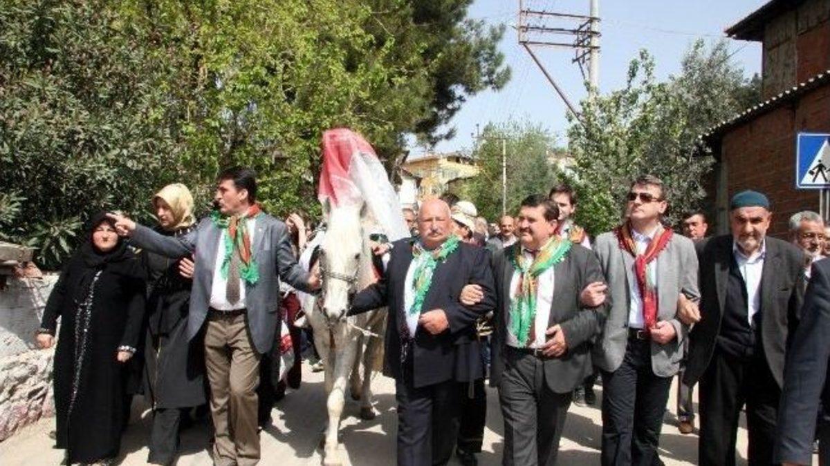 Osmangazi Belediyesi’nin bu yıl 10’uncusu düzenlediği "Osman Gazi'yi Anma ve Bursa'nın Fethi Şenlikleri" kapsamında, geleneklerin yaşatılması amacıyla gerçekleştirilen köy şenliği, Ahmetbey ve Aksungur köylerinde gerçekleştirildi. Renkli görüntülere sahne olan köy düğünün de damadı önce traş edip yıkadılar, sonra tuzladılar.Fetih şenlikleri kapsamında düzenlenen köy düğünü etkinleri, Ahmetbeyköy de düzenlenen gelin alıcı töreni ile başladı. Köy meydanında düzenlenen düğünde konuşan Osmangazi Belediye Başkanı Mustafa Dündar, binlerce yıllık gelenek ve göreneklerinin dikkatlice araştırılıp birebir yaşatılması ve gelecek nesillere aktarılması için çalıştıklarını söyledi. Tarihi ve kültürel mirasın gelecek nesillere aktarılması noktasında bu tür etkinlikleri geleneksel olarak her yıl gerçekleştirdiklerini ifade eden Dündar, "Osmangazi Belediyesi, tarihi ve kültürel mirasın yaşatılması çalışmaları ile bir çok ödüle layık görülmüş bir belediye. Bursa’nın sadece fiziki olarak değil, kültürel manada da var olan zenginliklerini, düzenlediğimiz etkinliklerle yaşatıyoruz" dedi.Ahmetbey köyündeki gelin alma töreninin ardından şenliğin ikinci adresi, damat evinin bulunduğu Aksugur köyü oldu. Köy meydanına akın eden vatandaşlar davul zurna eşliğinde folklor gösterileriyle coşarken, Başkan Dündar köyün girişinde ata bindirilen gelini köy meydanına kadar elleriyle getirdi. Köy meydanında düzenlenen törende, gelin ve damadın nikahlarını kıyan Başkan Mustafa Dündar, nikah cüzdanını geline verdi. Ardından meydanda bir sandalyeye oturtulan damada, arkadaşları tarafından damat traşı yapılırken, geleneklere göre damadın üzerine önce bir kova su boşaltılıp yıkandı, ardından da başından aşağıya tuz döküldü. Oldukça renkli görüntülere sahne olan bu geleneğin yaşatılmasının ardından damat, başkan ve arkadaşları ile davul zurna eşliğinde oyun oynadıktan sonra gelinle birlikte evine giderken, köy düğünü de renkli görüntülerle sona erdi.Her iki köyde de büyük bir coşkunun yaşandığı köy düğünü eğlencesinde konuşan Osmangazi Belediye Başkanı Mustafa Dündar, düzenlenen bu şenliklerle, cihan imparatorluğunun kurucuları olan Osmangazi ve Orhangazi’yi andıklarını ve bin yıllık gelenekleri de yaşatarak geleceğe taşıdıklarını ifade etti. Bu yıl 10’uncusunu düzenledikleri Fetih Şenliklerinin de, bunlardan biri olduğunu ifade eden Dündar, "Yaklaşık bir ay sürecek olan bu etkinliklerimizi, bu yıl Ahmetbey ve Aksungur köylerimizde düzenlediğimiz geleneksel köy düğünü ile sürdürüyoruz. Osmanlıdan günümüze var olan geleneklerimizi, kültürümüzü yaşatma adına gerçekleştirdiğimiz etkinliklerimiz, sizlerin de desteği ile bundan sonra da sürecek" dedi.Köy düğünü şenliklerine, Osmangazi Belediyesi’nin konuğu olarak Bursa’da bulunan Bosna Hersek Stari Grad Belediye Başkanı İbrahim Hadzibajric ile çok sayıda vatandaş katıldı.