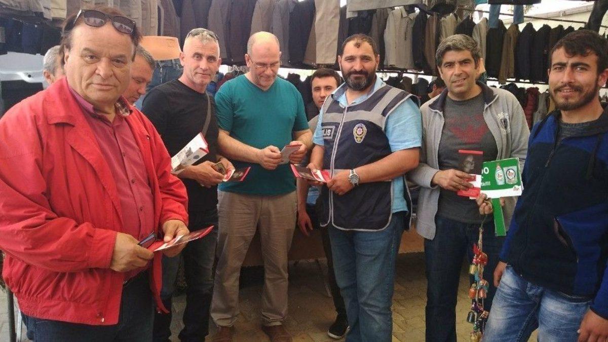 Başta Yunanistan olmak üzere Avrupa’ya kaçan göçmenlerin önünü kesmek isteyen polis, Balıkesir’in Gömeç ilçesinde vatandaşları bilgilendirerek broşür dağıttı. Ekipler son günlerde özellikle FETÖ’cülerin yurtdışına kaçmak için fırsat kolladığına dikkat çekerek vatandaşları uyardı.Gömeç Emniyet Müdürlüğü ekipleri ilçe genelindeki kahvehane, cadde ve sokaklarda vatandaşlara göçmen kaçakçılığına karşı duyarlı olmaları gerektiğini anlattı.İnsan kaçakçılarının ülkelerinde savaş başta olmak üzere açlık ve sefaletten kaçarak, daha iyi bir yaşam umudu için yasa dışı yollarla ülkemize girdiklerini ve aynı şekilde yasa dışı yollarla Yunanistan’ın Midilli Adası’na oradan da Avrupa’ya gitmek istediğini anlatan yetkililer, “Ancak çoluk çocuklarının geleceğini daha iyi koşullarda sağlayabilmek için bu umut yolculuğuna çıkan göçmenlerin hayalleri ne yazıkki çoğunlukla Ege Denizi’nde yaşanılan bindikleri şişme botların patlaması ve bunun sonucunda bir çığı boğularak hayatlarını kaybetme suretiyle trajedi ile sona eriyor. Bu insanların sırtlarından para kazanmaya çalışan insan tacirlerinin ise bu durum ne yazıkki umurlarında bile değil. Mülteci facialarında bugüne kadar yüzlerce masum çocuk hayatını yitirdi. Bu yaşanılanlar insanlık dramıdır” dediler.Göçmen kaçakçılığı konusunda, 15 Temmuz sonrasında bir çok FETÖ’cünün de mültecilerin arasında yurttan kaçtığını hatırlatan Polis ekipleri, “Kanundan kaçanların bu tür yasa dışı geçişlerle, güvenlik güçlerinin elinden kaçmaması için halkımızın da duyarlı olması ve emniyet güçlerine yardımcı olmaları vatandaşlık görevidir. Bu konuda vatandaşlarımız son derece dikkatli ve hassas davranmaları gerekmektedir. “ diye konuştu.