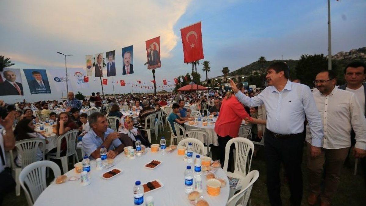 Antalya Büyükşehir Belediye Başkanı Menderes Türel, Finike Altuncan Hatun Kadınlar Plajı’nı Ramazan Bayramı’nda hizmete açacaklarını müjdeledi.Antalya Büyükşehir Belediyesi’nin iftar sofrası Finike’de kuruldu. Büyükşehir Belediye Başkanı Menderes Türel de iftara katılarak orucunu Finikelilerle birlikte açtı. İftar yemeğine Finike Kaymakamı Bahattin Alp Arslanköylü, Finike Belediye Başkanı Kaan Osman Sarıoğlu, AK Parti Finike İlçe Başkanı Osman Aladağ, muhtarlar, STK temsilcileri ve vatandaşlar katıldı. İftar sonrası Finikelilere seslenen Başkan Türel, “Bu sofralarda birliğimizi, beraberliğimizi, bağımsızlığımızı yaşıyor olmak bizim için önemli. Bayrağımız bu kutlu ülkede sonsuza dek dalgalansın. Allah birliğimizi, bütünlüğümüzü, bağımsızlığımızı her zaman daim etsin” dedi.“Artık direksiyonun başında millet var”Türel, “Huzurumuzu bozarak istikrarsız bir Türkiye isteyen güçlere karşı bağımsızlık diyoruz. Müslüman dünyanın öncüsü ve lideri olarak Filistin’den Arakan’a mazlum halkların haklarını savunmayı bir görev olarak gören liderimiz Cumhurbaşkanımız Recep Tayyip Erdoğan ile Türkiye’yi büyük bir güce dönüştürmenin mücadelesini veriyoruz. Son 16 senede Türkiye ekonomisinin üç buçuk kat büyüdüğünü biliyoruz. 3. köprüler 3. havaalanları, Marmaraylar. Devasa projelerle adeta kıskanılan bir ülke haline geldik. Türkiye’nin bu kalkınması bazılarını rahatsız ediyor. Bağımsızlığımıza ve bu ülkenin kalkınmasına göz dikenler eskiden olduğu gibi yine Türkiye’yi uzaktan kumanda ile yönetmek istiyorlar, karşılarında el pençe divan duran liderler arıyorlar. Ama onlar eski Türkiye’de kaldı. Artık direksiyonun başında milletimiz var. Diklenmeden dik durmayı başaran bir lider ve arkadaşları var” ifadelerini kullandı.“Çözülememiş sorunları çözdük”Başkan Türel, Finike’nin yıllardır çözülememiş birçok sorununu vatandaşların desteği ile çözüme kavuşturduklarını belirterek, “Kangren haline gelen toptancı hal sorununu çözebiliyorsak, 70’li senelerden beri yapılamayan Ernez Yolu’nu açabiliyorsak, modern bir mezbaha kazandırabiliyorsak, Finike’nin en büyük ihtiyaçlarından öğrenci yurdunu 10 milyon liralık bir yatırımla kazandırabiliyorsak, bunlar sizin desteklerinizle oluyor” diye konuştu.Türel, Finike’nin siluetine ve güzelliğine muhteşem bir anlam katacak Eroğlu Nuri Cami’sini de ilçeye kazandıracaklarını söyledi.Kadınlar plajı bayramda açılıyorFinike Altuncan Hatun Kadınlar Plajı’nı Ramazan Bayramı’nda hizmete açacaklarını müjdeleyen Başkan Menderes Türel, “Antalya’da Sarısu Kadınlar Plajımızı, Alanya’da Aysultan Kadınlar Plajımızı hizmete açtık. Şimdi Finike’de açıyoruz. Artık birçok dostumuz Antalya’ya sadece kadınlar plajından istifade etmek için geliyor. “Vay efendim ayrımcılık vay efendim doğa katliamı.” Biz hanım kardeşlerimiz için pozitif ayrımcılığı anayasa maddesi haline getirmiş bir iktidarız. Bazı ideolojik söylemlerin arkasına gizlenerek farklı noktalara taşımak isteyenler oluyor. Sonra o eylemleri yapanlar kadınlar plajından en çok faydalananlar oluyor.”Elmalı’dan servisElmalı’dan kadınlar plajına ücretsiz toplu ulaşım hizmeti koyacaklarını belirten Türel, “Elmalı’dan gelecekler denize girecekler ve Elmalı’ya dönecekler. Elmalı’ya denizi götüremezsek de Elmalı’yı denize götürüyoruz. Birçok yerli ve yabancı turist sadece kadınlar plajından istifade etmek için Finike’ye gelecek” dedi.“Destek sizden hizmet bizden”Finike Yalnız Mahallesi’ne 3 bin ton kapasiteli soğuk hava deposu ihalesini yaptıklarını ancak ilk ihaleye katılım olmadığını anlatan Başkan Türel, “Soğuk hava deposunu yaptığımızda Finike’nin güvenilir tescilli portakalı da diğer bütün tarım ürünlerinden daha çok para edecek. Sadece bu soğuk hava deposu 11 milyon TL’ye mal olacak. Arif, Yalnız, Gökçeyaka, Göktürk mahallerindeki sulama suyu çalışmamız bitti. Ernez muhtarımız burada ‘70’li yıllardan beri oradaki çınarın altında Ernez yolu için söz verip giden siyasetçilerden değilim, yapacağım’ dedim. Allah nasip etti. 70’li yıllardan beri bekleyen Ernez yolunu siz desteklediniz biz yaptık. Bütün hizmetlerimizin gerçek mimarı Finikeli hemşerilerimdir. Destek sizden hizmet bizden” diye konuştu.Ev ve hasta ziyareti yaptıBaşkan Menderes Türel, Finike’de ev ve hasta ziyaretlerinde de bulunarak gönül aldı. 1993 yılında Batman’da şehit olan Nurettin Tel’in ailesini ziyaret eden Türel, aileyle sohbet etti. Başkan Türel, karşılaştığı Finikeli çocuklara da Antalyaspor forması ve futbol topu hediye etti.