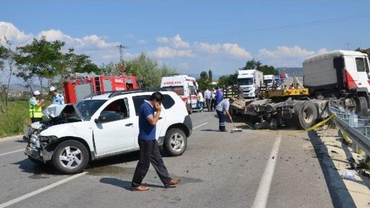 Çorum’un Osmancık ilçesinde frenleri kilitlenen TIR’ın karşı yönden gelen araçlara çarpması sonucu meydana gelen trafik kazasında 7 kişi yaralandı.Edinilen bilgiye göre, D-100 Karayolu'nda seyir halinde olan Dursun Atagün (48) yönetimindeki 19 HK 388 plakalı TIR’ın ilçe girişine geldiği sırada frenleri kilitlendi. Frenlerinin kilitlenmesi ile sürücüsünün direksiyon hakimiyetini kaybetmesi sonucu kontrolden çıkan TIR, yol çalışması nedeniyle tek şeritten verilen D-100 Karayolu'nda önce karşı yönden gelen Muzaffer Öztürk (48) yönetimindeki 16 ZA 990 plakalı otomobile, ardından Murat Alıcı yönetimindeki Almanya plakalı MR DU 52 otomobile çarptı. TIR, orta bariyerlere çarparak durabildi.Kazada araçlarda maddi hasar oluşurken, TIR sürücüsü Dursun Atagün ile Almanya plakalı otomobilde yolcu olarak bulunan Saliha Alıcı, 16 ZA 990 plakalı otomobil sürücüsü Muzaffer Öztürk, araçta yolcu olarak bulunan Mustafa Akdeniz (49), Emin Koca (26), Aslıhan Koca (25) ve Furkan Öztürk (17) yaralandı.Yaralılar olay yerinde yapılan ilk müdahalenin ardından ambulanslarla Osmancık Devlet Hastanesi’ne kaldırılarak tedavi altına alındı.Kaza nedeniyle Samsun-İstanbul karayolu trafiğe kapatıldı. Yolun kapatılması nedeniyle yolun her iki şeridinde de yaklaşık 5 kilometrelik araç kuyruğu oluştu. Kaza yapan araçların kaldırılmasının ardından yol tekrar trafiğe açıldı.Kazayla ilgili soruşturma sürüyor.