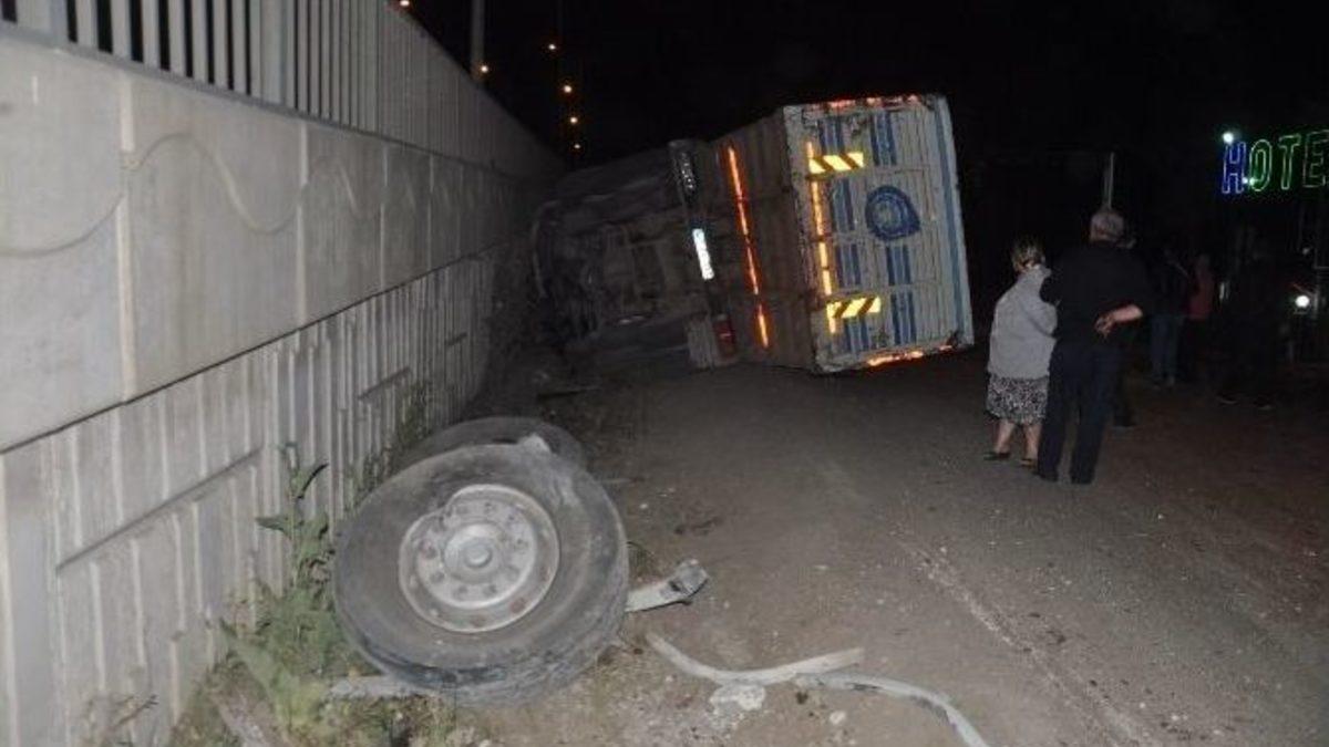 Tekirdağ’da meydana gelen trafik kazasında freni patlayan odun yüklü kamyonun devrilmesi sonucu sürücü yaralanırken, savrulan odunlar ise yolu trafiğe kapattı.Kaza Tekirdağ girişi Çevre Yolu Malkara bağlantısı üzerinde meydana geldi.Edinilen bilgiye göre, İbrahim Ünver (58)’in kullandığı 17 FY 929 plakalı kamyonun Tekirdağ girişinde bulunan köprüye yaklaştığı esnada freni patladı. Kamyonu kontrol etmeye çalışan sürücü Ünver direksiyon hakimiyetini sağlayamayarak köprü girişindeki bariyerlere çarparak yan yola devrildi. Çevredekilerin ihbarı üzerine olay yerine 112 ekipleri çağrıldı. 112 ekiplerince yaralanan kamyon sürücüsü Ünver ambulansa Tekirdağ Devlet Hastanesi’ne kaldırıldı.Yaklaşık 20 ton odun yüklü kamyonun devrilmesi sonucu yola saçılan odunlar Çevre Yolu’nu ve diğer bağlantı yollarını trafiğe kapattı. Temizlik ekiplerinin yola yayılan odunları kaldırması ile trafik tekrar normale döndü. Freni patladığı iddia edilen kamyon ise çekici vasıtasıyla kaldırıldı. Kazada yaralanan kamyon sürücüsü Ünver’in durumunun iyi olduğu bildirildi.Kazayla ilgili başlatılan soruşturma devam ediyor.