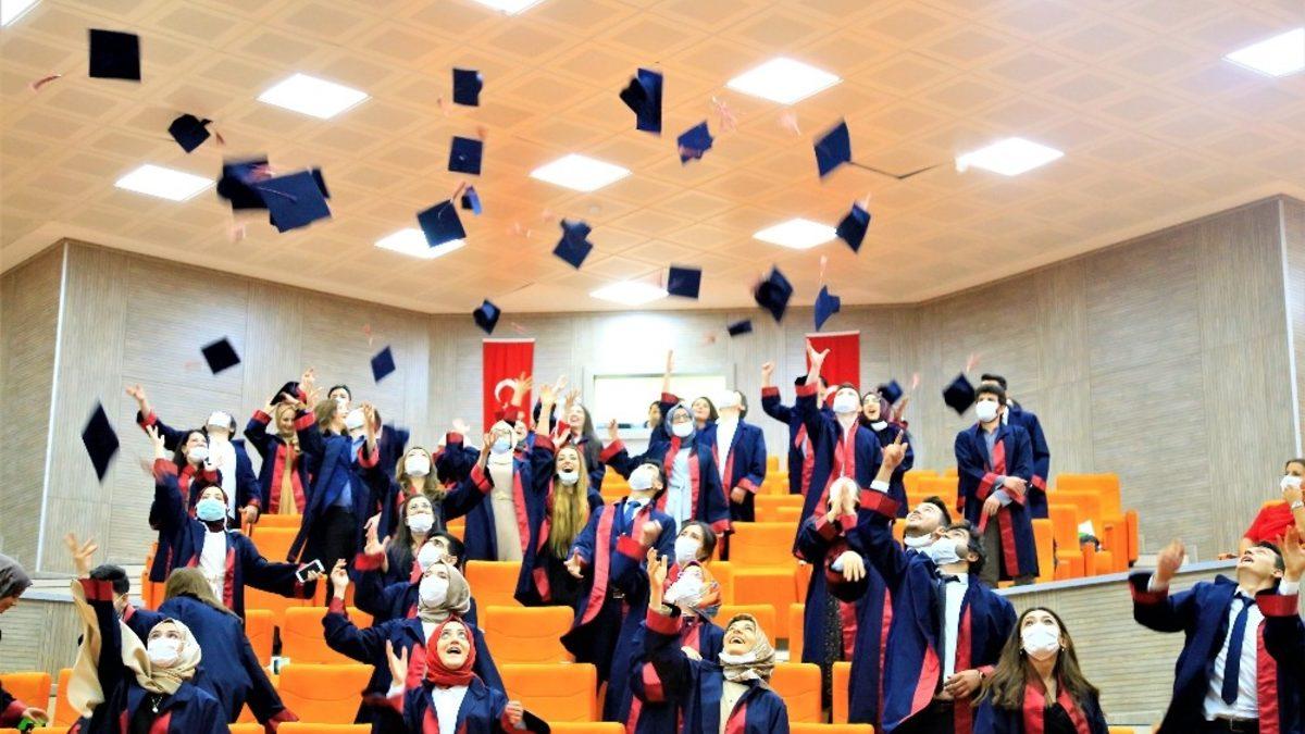 İlk mezunlar adına konuşma yapan dönem ikincisi Damla Kaygusuzoğlu ise, “Bugün ortak bir sevince paylaşmak için buradayız. 5 yıl süren zorlu eğitim sürecini bitirmenin haklı gururunu yaşamaktayız. Eğitimimizin devamı için emek veren ve mezuniyet düzenleyebilen tek Diş Hekimliği Fakültesi olmanın gururunu bize yaşatan dekanımız, dekan yardımcılarımız ve hocalarımıza teşekkür ediyorum” dedi.