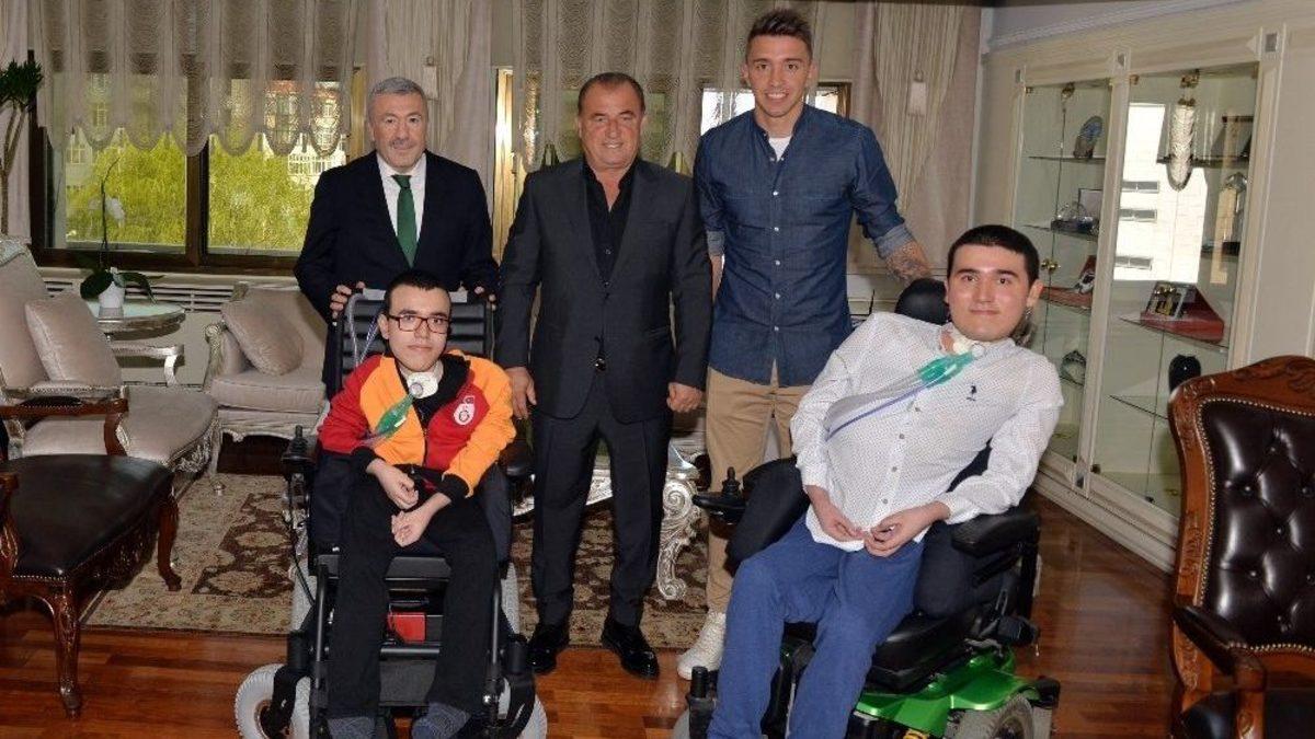 Galatasaray Teknik Direktörü Fatih Terim ile futbol takımı kalecisi Fernando Muslera, kas hastalığı olan Alperen ile Mehmet Emin’i ziyaret etti.Galatasaray Teknik Direktörü Fatih Terim ile futbol takımı kalecisi Fernando Muslera, Türk Polis Teşkilatı’nın 173. yıl etkinlikleri kapsamında, Esenler İlçe Emniyet Müdürlüğü kadrosunda görevli polis memuru Fehmi Yardımcı’nın kas hastası oğlu 9 yaşındaki Alperen ve kendisi gibi kas hastası olan 11 yaşındaki ağabeyi Mehmet Emin, en büyük hayalini gerçekleştirdi. Çocuklar, Muslera ve Fatih Terim, İstanbul Emniyet Müdürü Mustafa Çalışkan’ın makamında buluştu. Ziyaret kapsamında İl Emniyet Müdürü Mustafa Çalışkan’a Fatih Terim tarafından Galatasaray forması, Alperen ve Mehmet Emin’e Fernando Muslera tarafından imzalı forma hediye edildi.