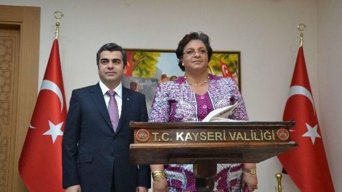 Gana Dış İşleri ve Bölgesel Entegrasyon Bakanı Hannah Tetteh ve Gana Ankara Büyükelçisi İbrahim Abass Vali Orhan Düzgün’ü makamında ziyaret etti.Yapılan ziyarette Kayseri’deki ticaret geçmişinin köklü yıllara dayandığını ifade eden Vali Orhan Düzgün, “Bu ticari kültüre bugün Kayserililerde sahip çıkmaktadır. Kayseri Anadolu’da ticaretin en çok olduğu şehirlerin başında gelmektedir. Sizin bu ziyaretinizle sanayi, turizm ve dört üniversitesi olan şehrimizde ilişkileri geliştirmeyi düşünüyoruz” dedi.’Kayseri’de yaklaşık binin üzerinde fabrika bulunmaktadır’ diyen Orhan Düzgün, "Bunlar yurtdışına da ihraç yapmaktadırlar. Tabi Gana’nın da çok zengin bir ülke olduğunu biliyoruz. Özellikle gıda, enerji bu alanlarda da iş birliğini geliştirmek isteriz. Bu ziyaretin iki ülke arasında ve ilimiz için de hayırlı olmasını diliyorum” şeklinde konuştu.Gana Dış İşleri ve Bölgesel Entegrasyon Bakanı Hannah Tetteh ise, “Benim Kayseri’ye gelmemin sebebi Çanakkale’nin 100. Yıl kutlamasıydı fakat Büyükelçilikten Kayseri’ye gelmemin faydası olacağını söylediler. Burada Kayseri’nin bize sağladığı faydalar ve imkanlar bizi çok memnun etti. Türkiye’nin çok fazla stratejik bir konumda olduğunu, Türkiye’nin Avrupa ve Asya’nın köprüsü olduğunu biliyorum" diye konuştu.