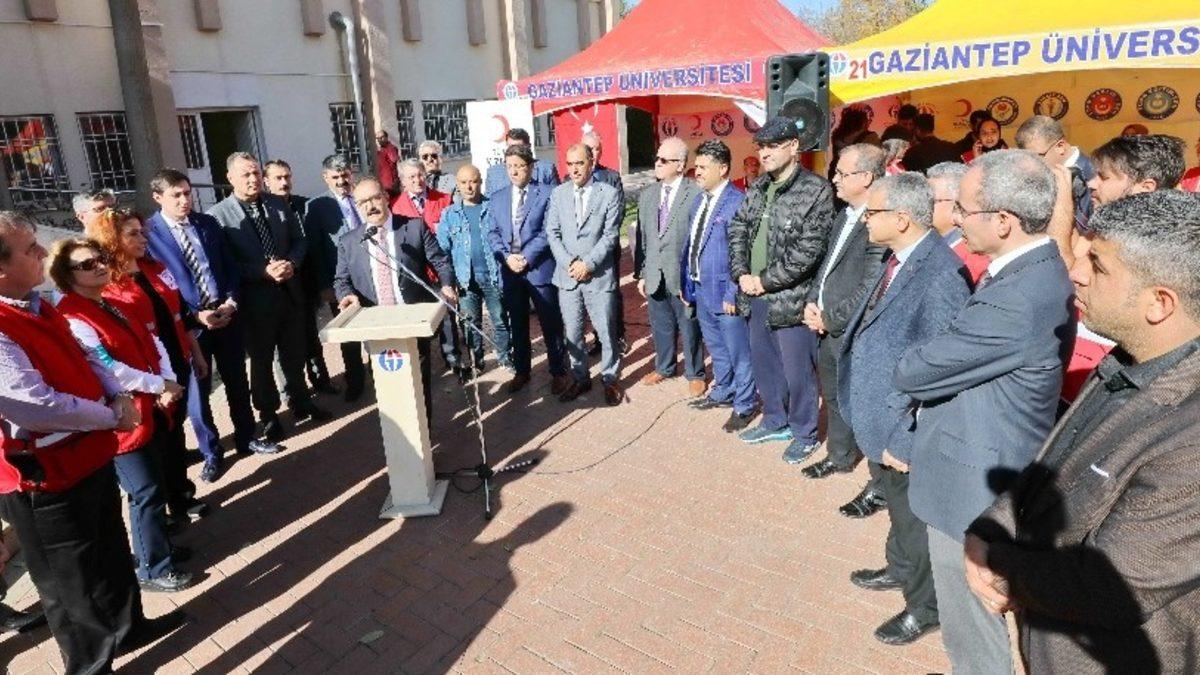 Gaziantep Üniversitesi (GAÜN) Genç Kızılay Topluluğu tarafından GAÜN Merkezi Yemekhane önünde gerçekleştirilen kan bağışı kampanyasına katılan Rektör Prof. Dr. Ali Gür, kan bağışında bulunarak kampanyaya destek verdi.