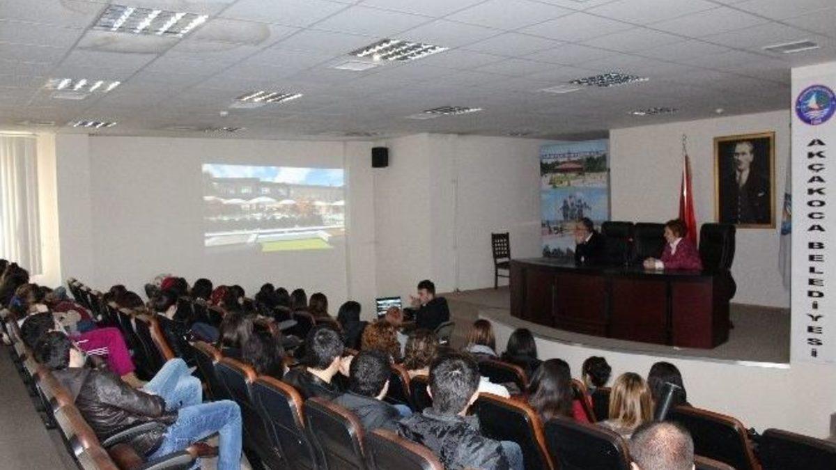 Gazi Üniversitesi, Mimarlık fakültesi şehir ve bölge planlama bölümü 2. sınıf öğrencileri Akçakoca ilçesinde incelemelerde bulunmak üzere Akçakoca Belediyesine geldi.Öğrenciler ile birlikte Belediye meclis salonunda bir toplantı gerçekleştirilerek belediye tarafından kendilerine sokak sağlıklaştırma projeleri ile ilgili bir sunum yapıldı. Gerçekleşen toplantı sonrası, öğretim üyeleri Doç. Dr. Fatma Edoğan Aras ve Yrd. Doç. Dr. Demet Erol Belediye Başkanı Cüneyt Yemenici’ye bir plaket sunarak yardımları için teşekkür ettiler. Öğretim üyelerinden alınan bilgiye göre öğrenciler Akçakoca’nın 1/5000 ölçekli nazım imar planını yaptıktan sonra, 1/1000 ölçekli uygulama imar planı ve kentsel tasarım projelerini yapacakları belirtildi.