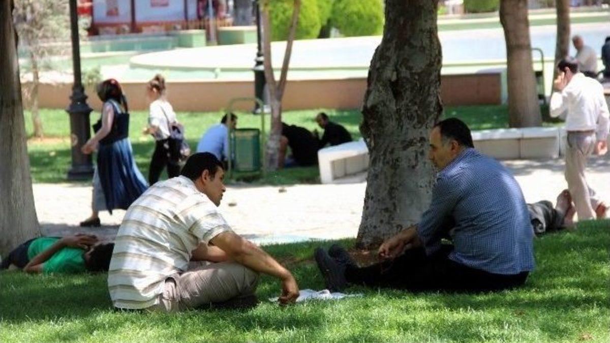 Hava sıcaklığının 40 dereceyi aştığı Gaziantep’te oruç tutan vatandaşlar zor anlar yaşıyor. Kimileri serinlemek için klimalı camilere giderken, kimileri ise park ve bahçelerdeki ağaçların gölgelerine sığındı.Kuzey Afrika üzerinden gelen sıcak hava Gaziantep’te adeta kavurucu etkiye dönüştü. Zaman zaman sıcaklıkların 40 dereceye aştığı kentte, ramazan ayı nedeniyle oruç tutan vatandaşlar büyük sıkıntı yaşıyor. Sıcak ve susuzlukla mücadele etmek zorunda kalan vatandaşlar, park ve bahçelerde buldukları gölgede güneşin yakıcı etkisine karşı kendisine korunak aradı. Ağaçların gölgelerine sığınanlar, zaman zaman çeşme başlarında yüzlerini yıkayarak serinlemeye çalıştı.ÜZERİNE KONAN GÜVERCİNİ FARK ETMEDİSıcağın ve orucun yorduğu bazı vatandaşlar buldukları gölgelik alanlarda ise çok derin uyku çekti. Çevredeki olan bitenden habersiz olan bir vatandaş, üzerine konan güvercini bile fark etmedi. Bazıları park ve bahçelerdeki gölgelik alanlarda uyurken, kimileri ise klimalı camilere sığınarak, serinliğin keyfini çıkardı. Bazıları ise klimalı mağazalarda saatlerce turlayarak, hem vakit geçirmeye hem de serinlemeye çalıştı.Adana’dan geldiğini belirten Ömer Ceylan, "Gaziantep çok sıcak. Oruçlu oruçlu bu sıcaklar çekilmiyor. Biraz vakit geçsin, biraz serinlemek biraz da dinlenmek için parka geldik. Biraz uyuyarak kendimize geldik. Gerçekten parklar daha serin oluyor" şeklinde konuştu.Beden eğitimi öğrencisi olan Okan Altınbaş ise, “Evler şu an çok sıcak. Evde durulmuyor. Bizde parklara indik. Serinlemek amacıyla geldik. Buralarda sıcak ama evlere göre daha serin" ifadesini kullandı. Gaziantep’teki sıcakların Adana’yı aratmadığını söyleyen Yakup Gezginci, “İnanılmaz derecede sıcak var, burada. Çok sıcak. Klima olmadığı için en iyi çözüm bizim için parktır. Ağaçlar tabi serinlememize çok yardımcı oluyor” ifadelerine kullandı.Öte yandan Meteoroloji Bölge Müdürlüğü’nün verilerine göre, sıcaklıkların hafta başından itibariyle daha da artması bekleniyor.