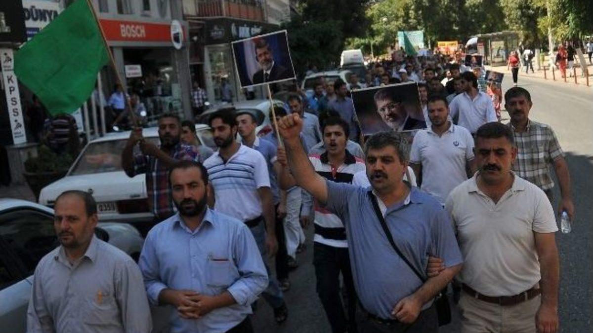 Mısır’da, darbenin ardından yaşanan katliam karşısında Gaziantep’te bulunan 25 sivil toplum kuruluşu Mısır’da yaşananlara tepki göstermek amacıyla bir araya geldi.İHH İnsani Yardım Vakfı ve Mazlum-Der önderliğinde düzenlenen eyleme 25 sivil toplum kuruluşu destek verdi. Kırkayak Parkı’nda toplan yüzlerce vatandaş, sloganlar ve pankartlar eşliğinde Balıklı Parkı’na doğru yürüyüşe geçti. Darbe ve dün yaşanan katliama karşı sloganlar atan yüzlerce kişilik grup, halkın oyuyla Cumhurbaşkanlığına getirilen Muhammed Mursi’ye destek verdi. Ellerinde pankartlarla Balıklı Parkı'na yürüyen grup, sık sık tekbir getirerek sloganlar attı.Balıklı Parkı'nda basın açıklamasını gönüllü kuruluşlar adına Mehmet Emin Arslan yaptı. Arslan, okuduğu basın açıklamasında şu ifadelere yer verdi:“İnsanlık tarihi ve İslam dünyası dün çok acı bir güne şahitlik etmiştir. Mısır’da, 46 gündür insanların oylarıyla Cumhurbaşkanı seçtikleri liderleri Muhammed Mursi'nin serbest bırakılması için Ramazan boyunca, iftar ve sahurlarla sivil direnişte bulunan, Rabiatül Adeviyye ve Nahda meydanlarında darbe karşıtı gösteri yapanlara karşı güvenlik kuvvetleri ve baltacılar eşliğinde müdahale ederek, yüzlerce Müslümanı öldüren, binlercesini de yaralayarak katliam gerçekleştiren çağdaş firavun sisi ve yandaşlarını protesto etmek için burada toplanmış bulunuyoruz. Mısır'da halkın tercihine ve iradesine yönelik darbeyi ve bugün Mısır halkına karşı katliam yapan darbecileri şiddetle ve nefretle kınıyor, lanetliyoruz. Bizler, ‘Mısır'da yaşananlar bizi ilgilendirmez’ demiyor ve Müslümanların dikkatini bu katliama çekmek istiyoruz. Mısır'da sadece özgürlük isteyenlerin üzerine ateş açılmıştır. Açılan bu ateşle ölen sadece Mısır Halkı değil, insanlık da ölmüştür. Mısır'daki katliamdan en az Sisi kadar ABD ve AB yönetimleri de sorumludur. Bu darbeye bir türlü darbe demeyerek, Mısır ordusunu ve Sisi'yi böyle bir darbe için cesaretlendirenler de en az onun kadar suçludur. Ey Müslümanlar, Susarak katliama ortak olmayın, Mısır katliamına karşı sessiz kalanlar dilsiz şeytandır.”MAZLUM-DER Gaziantep Şube Başkanı Abdurrahim Çelik ise “Mısır'da darbe karşıtlarına yönelik katliam giderek artarken, insan hakları savunucusu olduğunu söyleyen batılı ülkeler katliamı seyretmektedir. Batılı devletler, işlerine geldiği gibi hareket ederek kendi menfaatlerine yakın duranlara zarar geldiğinde 'insan hakları' diye dünyayı ayağa kaldıran sözde insan hakları savunucuları, Mısır'da insanlığın katledilmesine sessiz kalmaktadırlar. Darbe karşıtı Mısır halkı, savundukları davanın son derece şuurundadırlar. Onlar, silahların gölgesi altında çocukları ve eşleriyle çağımızda yeni destanlar yazıyor. Meydandakiler, direnişin Firavun ve askerlerine karşı Musa Peygamber ve dostlarının duruşu olduğunu, bu duruşlarını da asla bozmayacaklarını söylüyor. Tüm duygumuzla hissettik ki Mısır'da eli silahlı katillere karşı göğsünü siper eden Müslüman halk kazanmıştır. Cumhuriyet Karargahı, Adeviyye Meydanı ve Nahda'daki katliamlar, Müslüman Mısır halkının direnişini kıramayacak, zafer mutlaka inananların olacaktır. Buradan, Tel Aviv merkezli dünya medyasına sesleniyoruz; adetiniz olduğu gibi dün Bosna’da, Çeçenistan’da, Arakan’da, Miyanmar’da, Doğu Türkistan’da, Filistin’de, Irak’ta, şimdi de Suriye ve Mısır'daki bu katliamları hep görmezden geldiniz. İngiliz kraliyet ailesi için aynı gün 200 dakika canlı yayın yapan malum medya, geçtiğimiz günlerde 200 kişinin katledildiği Adeviyye Meydanı'na 20 dakika zaman ayırdı. Bu ve birçok olay gösteriyor ki Mısır'da yaşanan olaylar, doğudan batıya dünyayı kana bulayan siyonist ve emperyalist çevrelerle onların yerli işbirlikçileri tarafından yapılmakta ve dünya da buna seyirci kalmaktadır. Gaziantep Gönüllü Kuruluşları olarak, Mısır’da halkın iradesine ve sivil yönetime yönelik darbeyi, darbecileri ve katliamları lanetliyoruz. Mısır halkını, iradesine sahip çıkmaya, ‘Zulme rıza zulümdür’ inancı ile Müslüman ülkeleri zulme dur diyerek insiyatif almaya, Demokrat geçinen ve demokrasiyi önceleyen ülkeleri de Mısır’ın sivil yönetimine destek vermeye ve katliamlara dur demeye çağırıyoruz” ifadelerini kullandı.Yapılan basın açıklamasının ardından, Mısır’da yaşanan katliamın son bulması için dua edildi. Duanın ardından grup sessiz bir şekilde dağıldı.